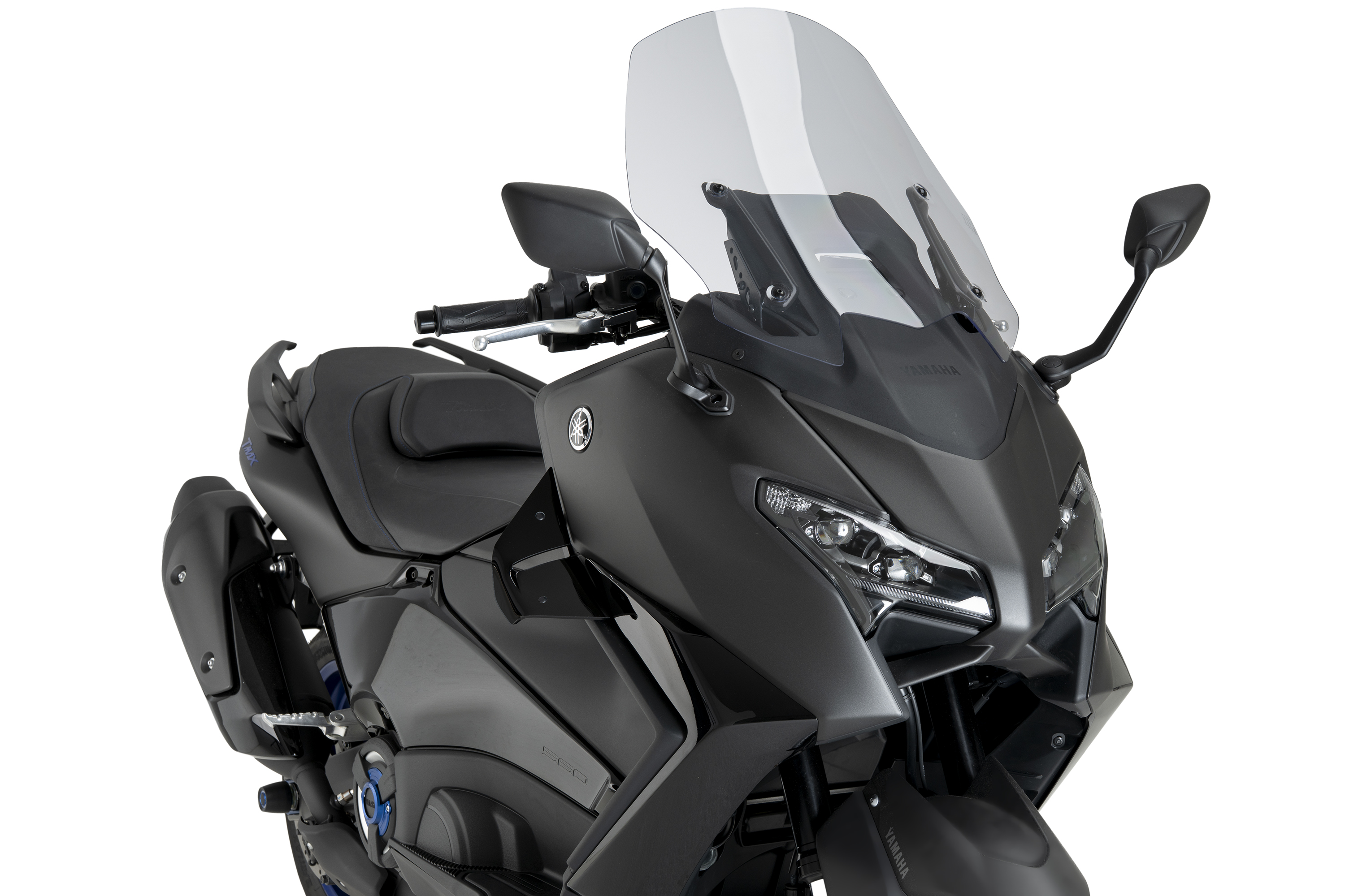 En l’àmbit aerodinàmic, els usuaris de la Yamaha T-Max 560 estan d’enhorabona amb l’arribada dels alerons D12. El seu disseny de doble ala dirigeix el flux d’aire cap a la part superior per generar una major càrrega aerodinàmica, mantenint un coeficient aerodinàmic eficient i un equilibri òptim entre rendiment i estabilitat.