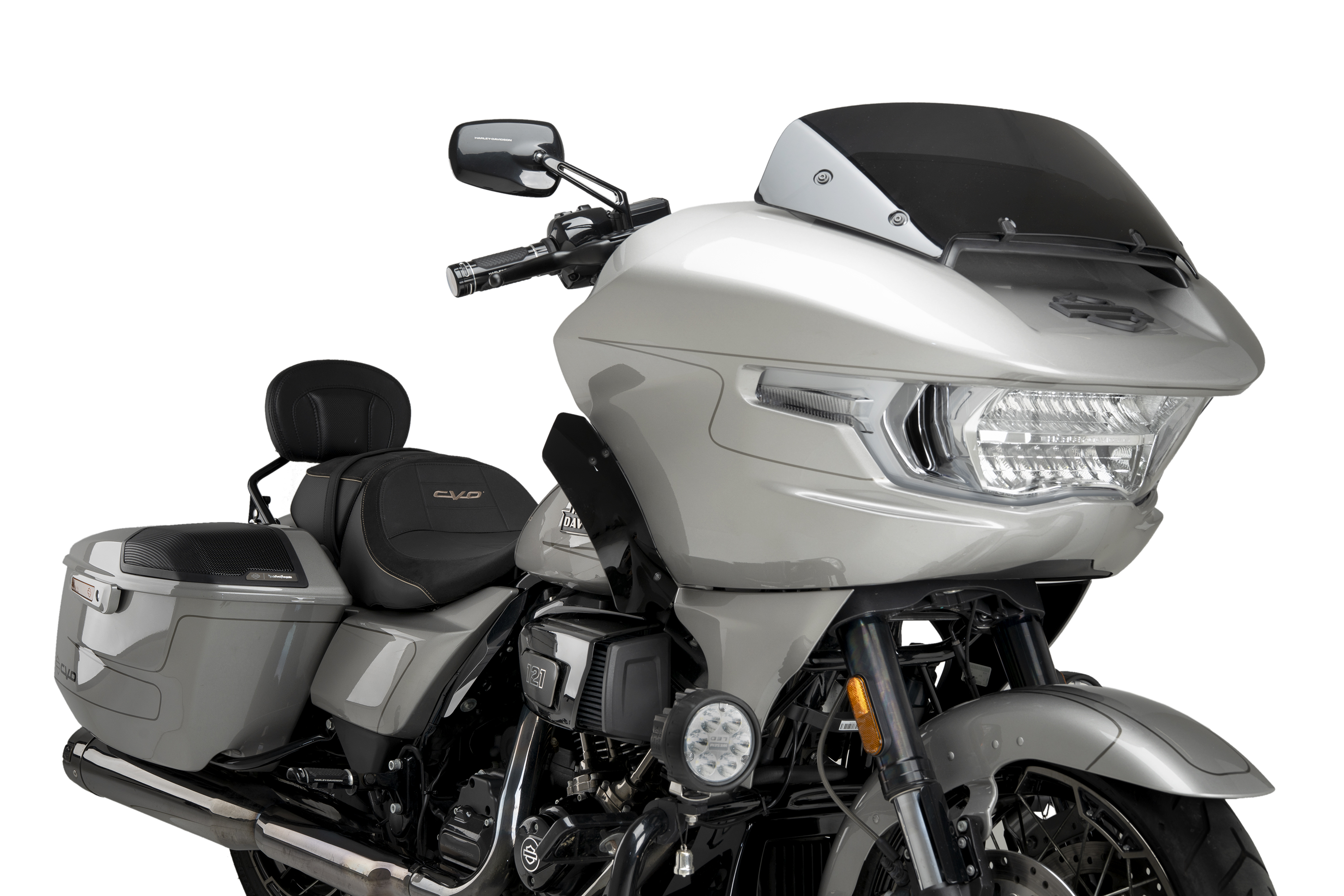 Seguint amb les millores aerodinàmiques, els deflectors Puig s’integren perfectament amb les línies de la moto gràcies al seu disseny i a l’alta qualitat dels seus acabats. Permeten desviar el flux d’aire cap a l’exterior de les cames, millorant notablement la comoditat durant la conducció. Aquesta setmana presentem els deflectors inferiors per a Harley-Davidson Road Glide i els deflectors aero roda, desenvolupats per millorar la seguretat i optimitzar el comportament aerodinàmic tant en conducció esportiva com en l’ús diari. La seva funció principal és reduir les turbulències generades per la roda davantera, augmentant l’estabilitat i la precisió, especialment a alta velocitat o en situacions exigents, fet que es tradueix en una conducció més previsible i un major confort per al pilot.