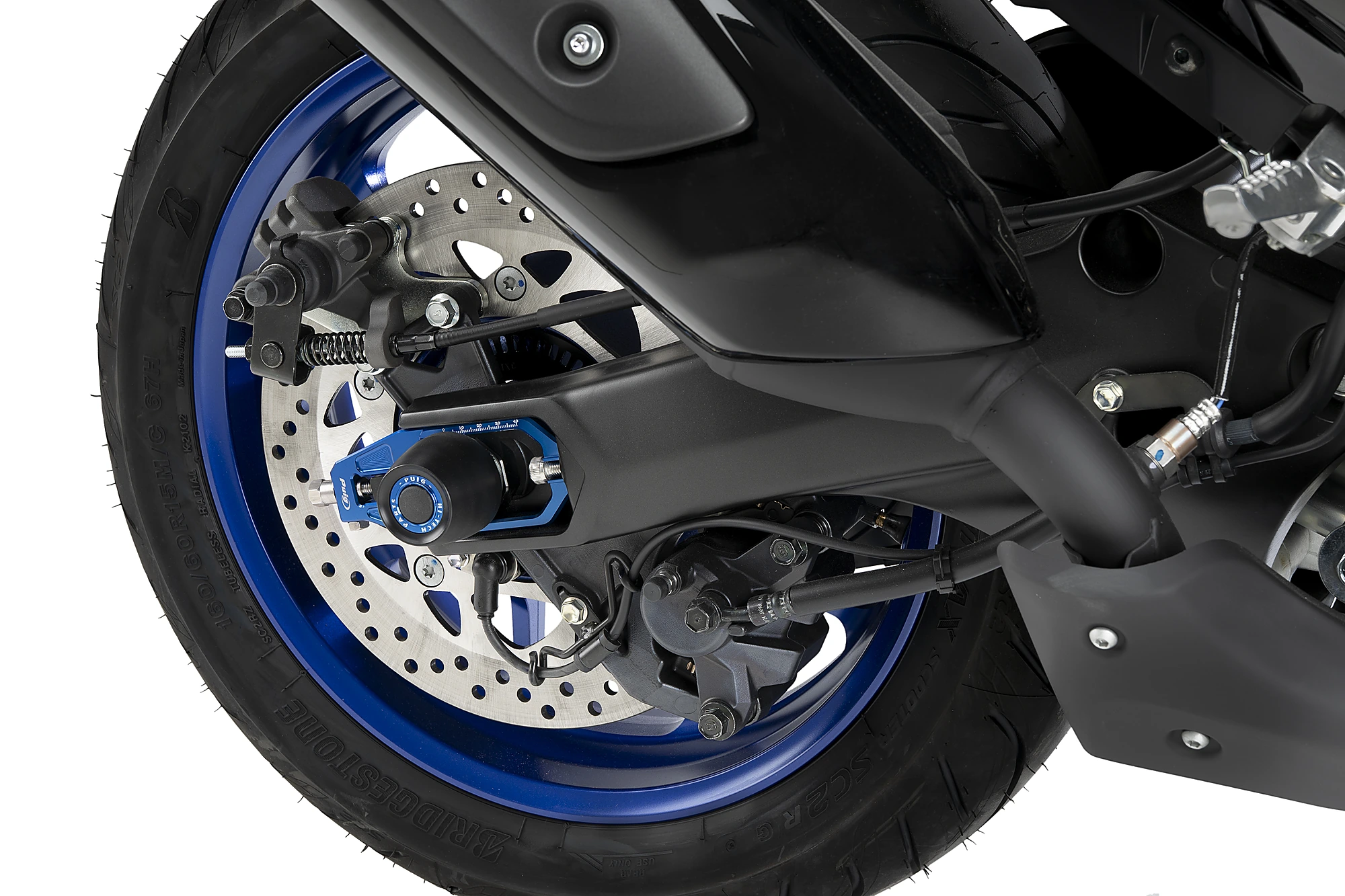 S'integra perfectament al buit del basculant de cada moto, i el seu anoditzat en una combinació de colors permet escollir l'opció que millor queda estèticament amb la nostra moto.