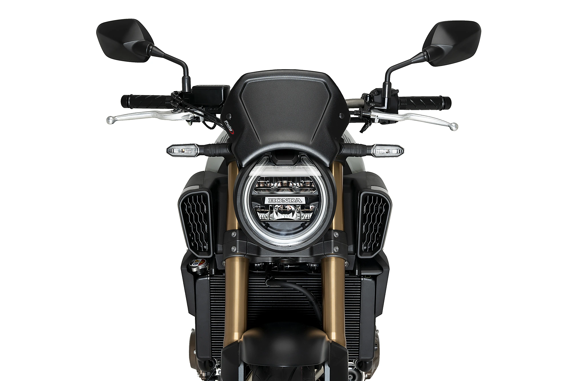 La placa frontal d’alumini de Puig és l’opció perfecta per potenciar el look vintage de l'Honda CB650R, alhora que ofereix una lleugera protecció contra el vent.