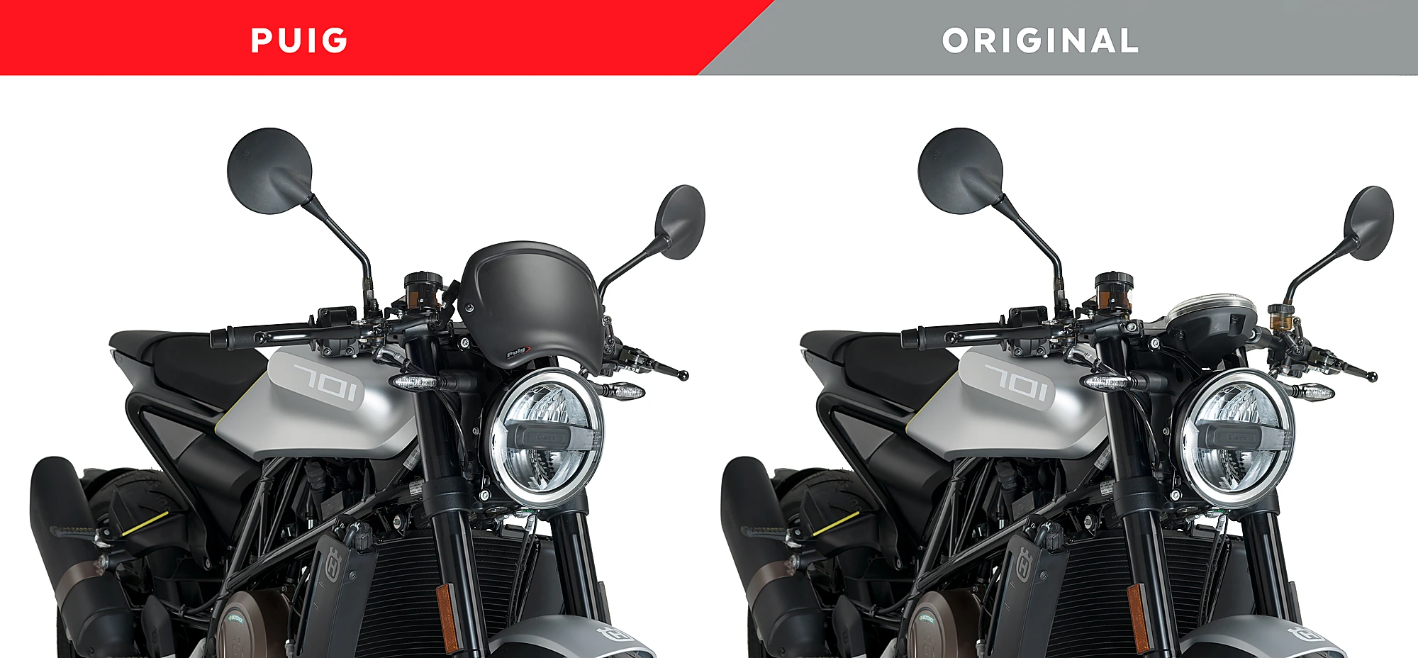 La placa frontal Puig està disponible per als models més populars de motocicletes retro-vintage, en aquest cas se serveix un kit de muntatge específic. A més, Puig també té disponible una referència per muntar la placa frontal amb un kit de muntatge universal per adaptar la placa en motos retro que no disposen de ferramentes específics.