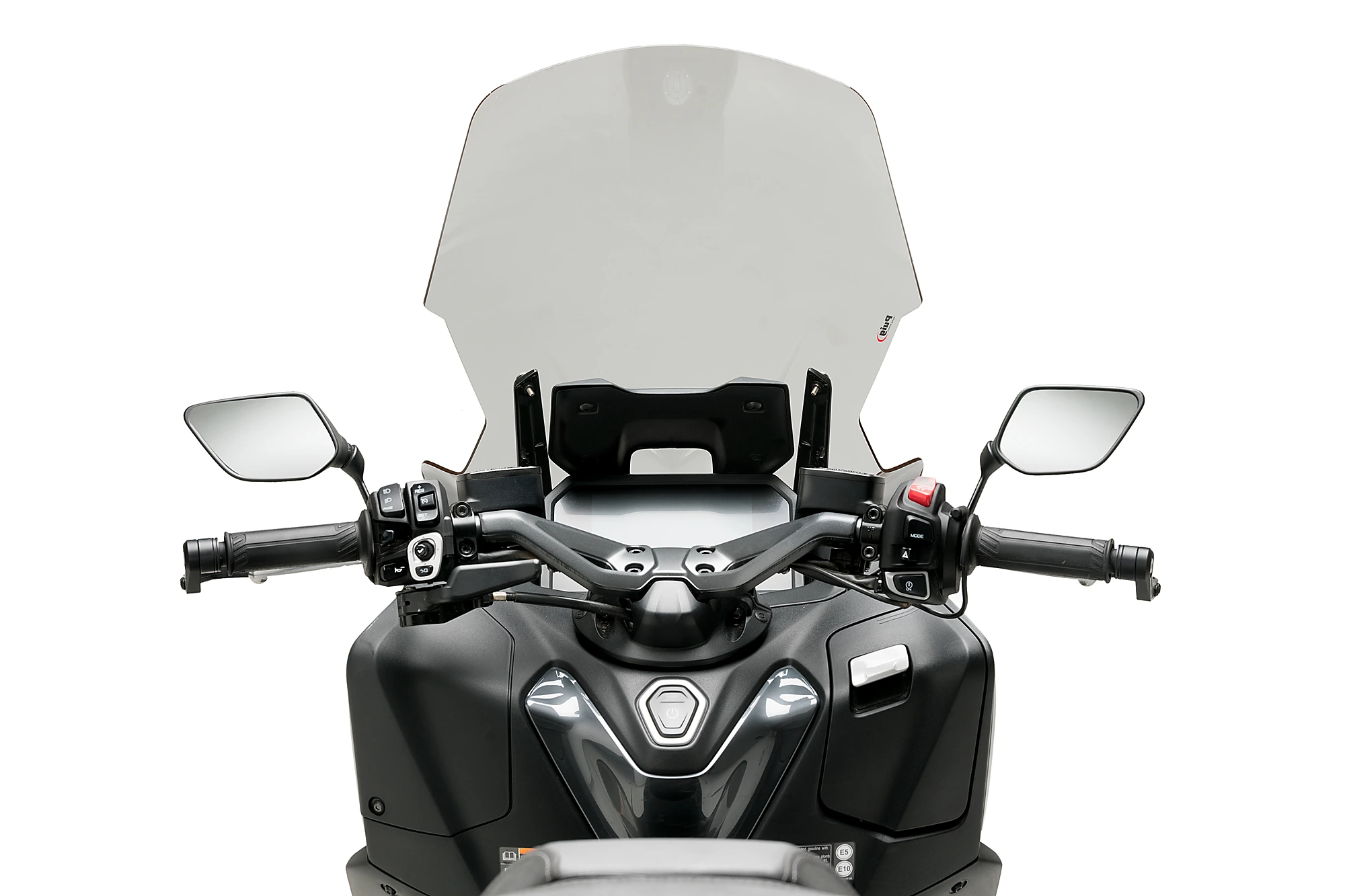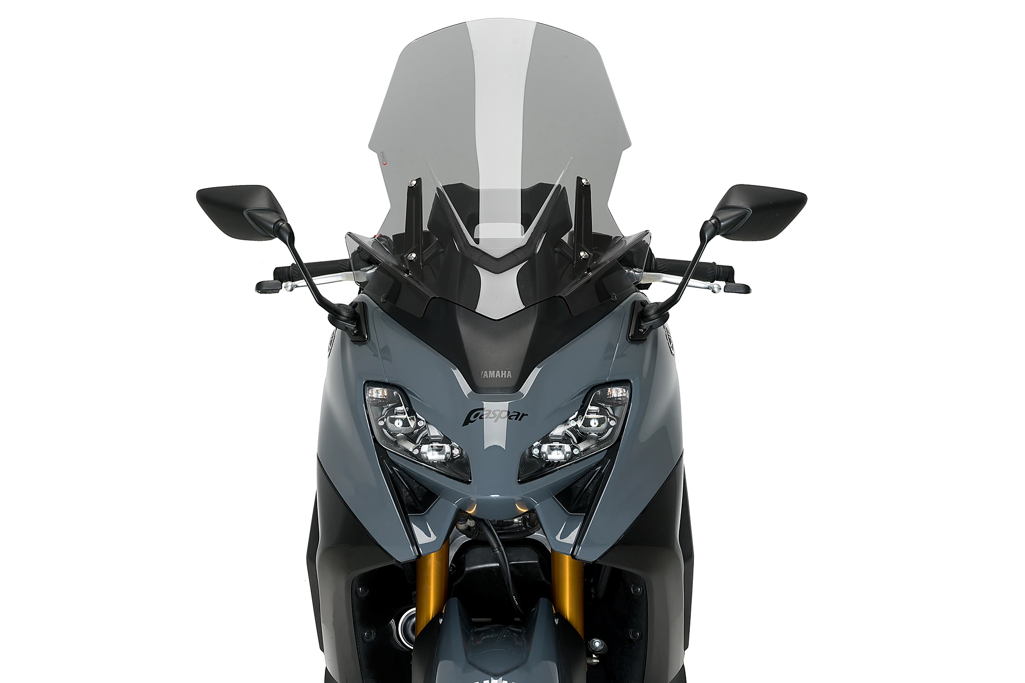 Desenvolupada per aportar més protecció aerodinàmica, gràcies a les seves formes estudiades amb la tecnologia del túnel del vent virtual, incorpora uns deflectors paramans als laterals que desvien l'aire que impactaria a les mans i braços del pilot. Alhora que el seu modern i elegant disseny s'adapta perfectament amb les línies de la Yamaha T-Max/Tech Max 22', obtenint un equilibri perfecte entre estètica i funcionalitat.