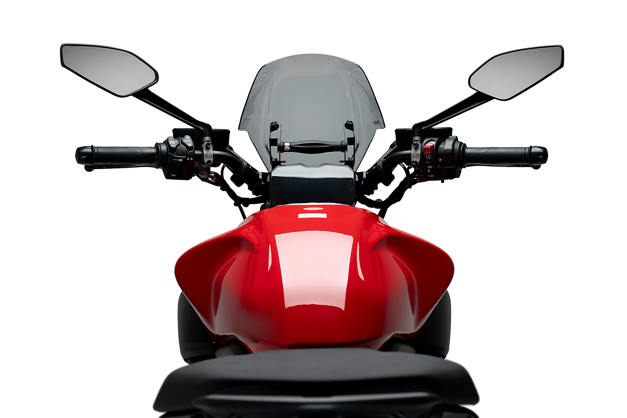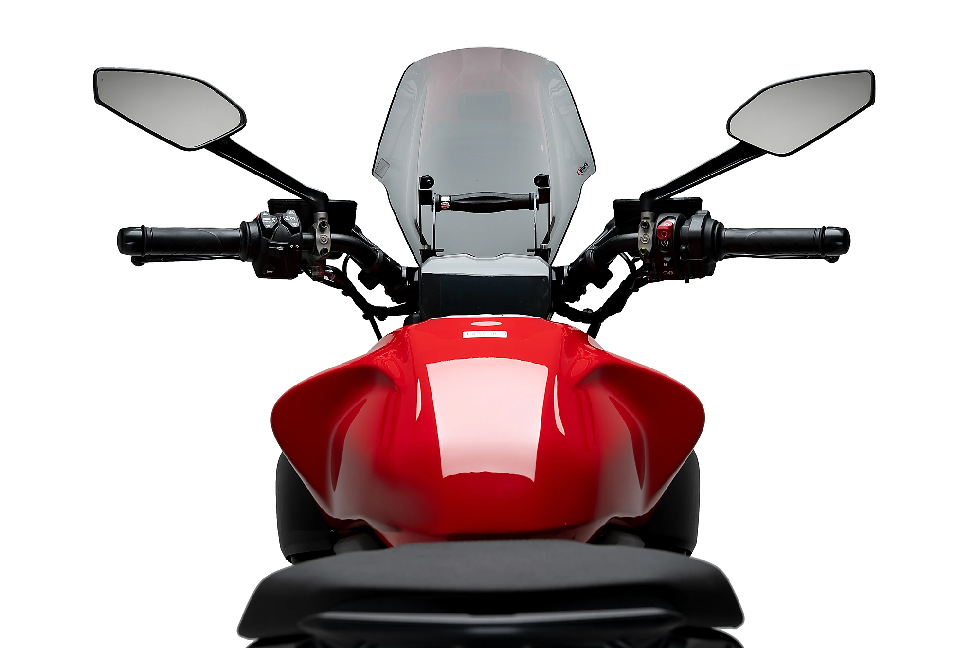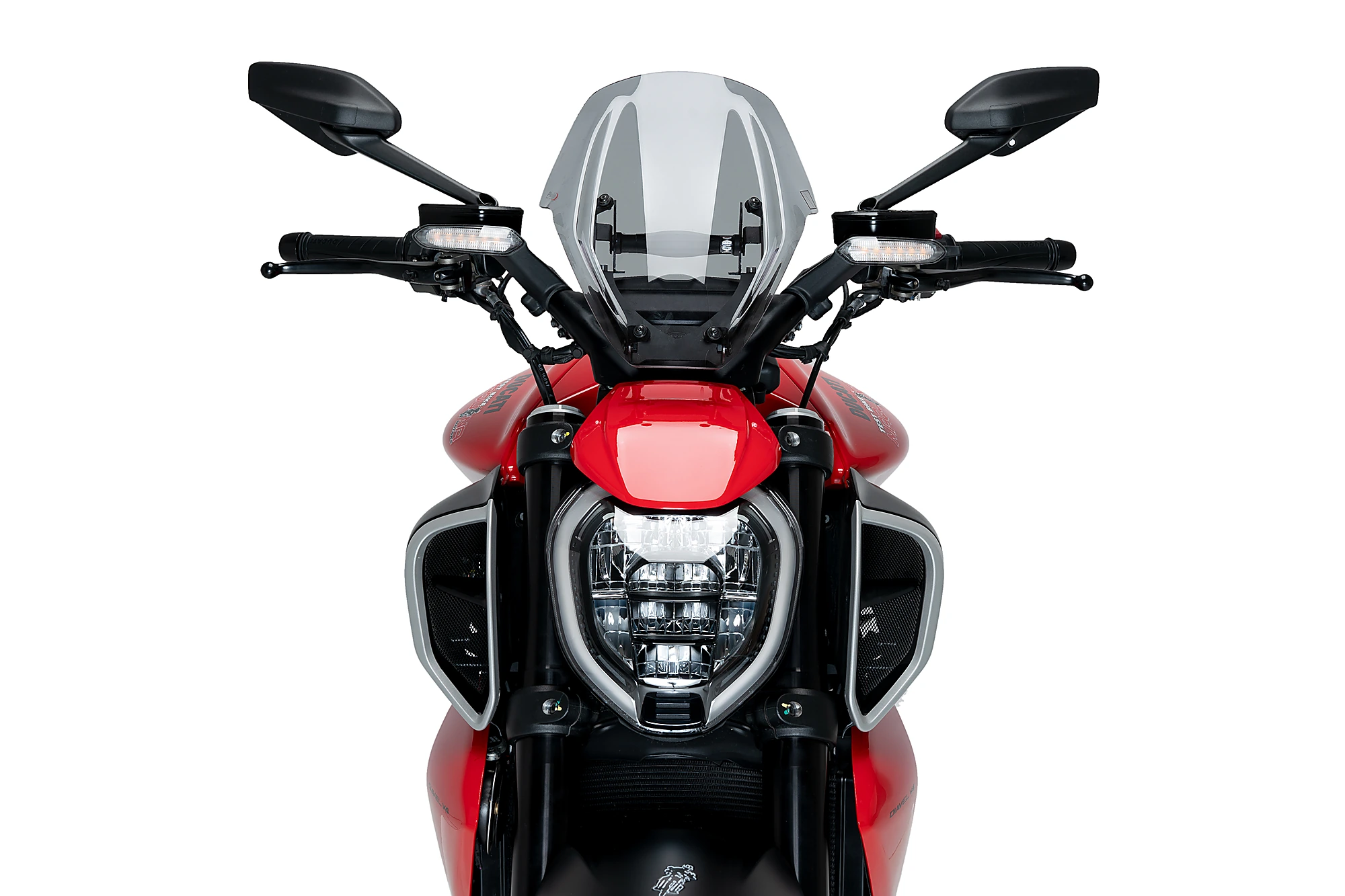 El carenabris New Generation Touring regulable de Puig aporta un plus de protecció mantenint el disseny atractiu i peculiar de la Muscle Bike italiana. Amb dues arestes principals i un tall lateral d'acord amb les formes del dipòsit de la Diavel V4, creant una simbiosi perfecta entre la moto i la pantalla.