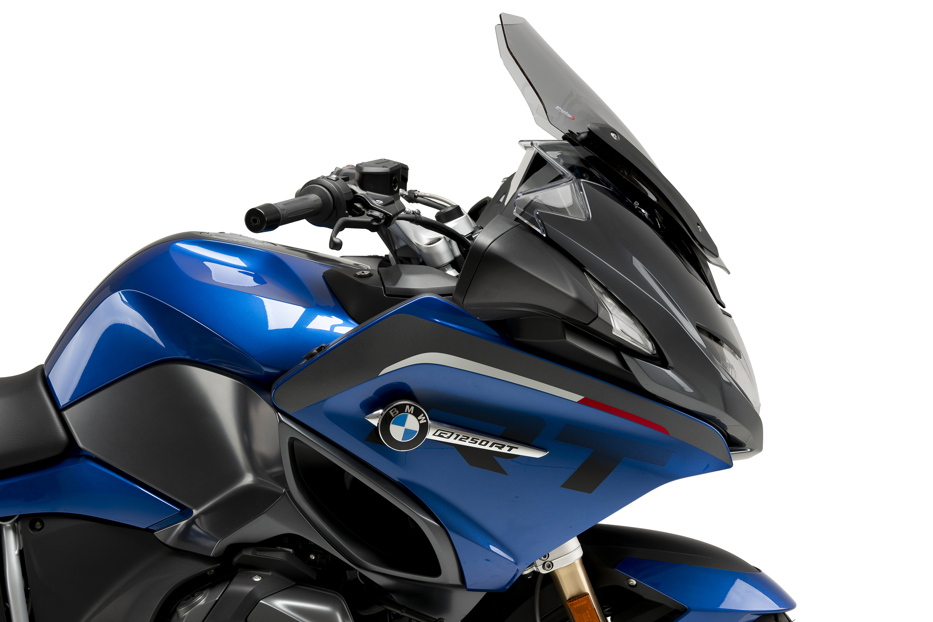La nova cúpula sport de Puig té com a principal funció oferir un camp de visió ampli per sobre de la cúpula, aportant una major mobilitat del pilot sobre la moto i una bona sensació de confort. Les arestes principals que ens assenyalen el far ens donen dinamisme i caràcter per al minimalista frontal de la BMW R1250RT.