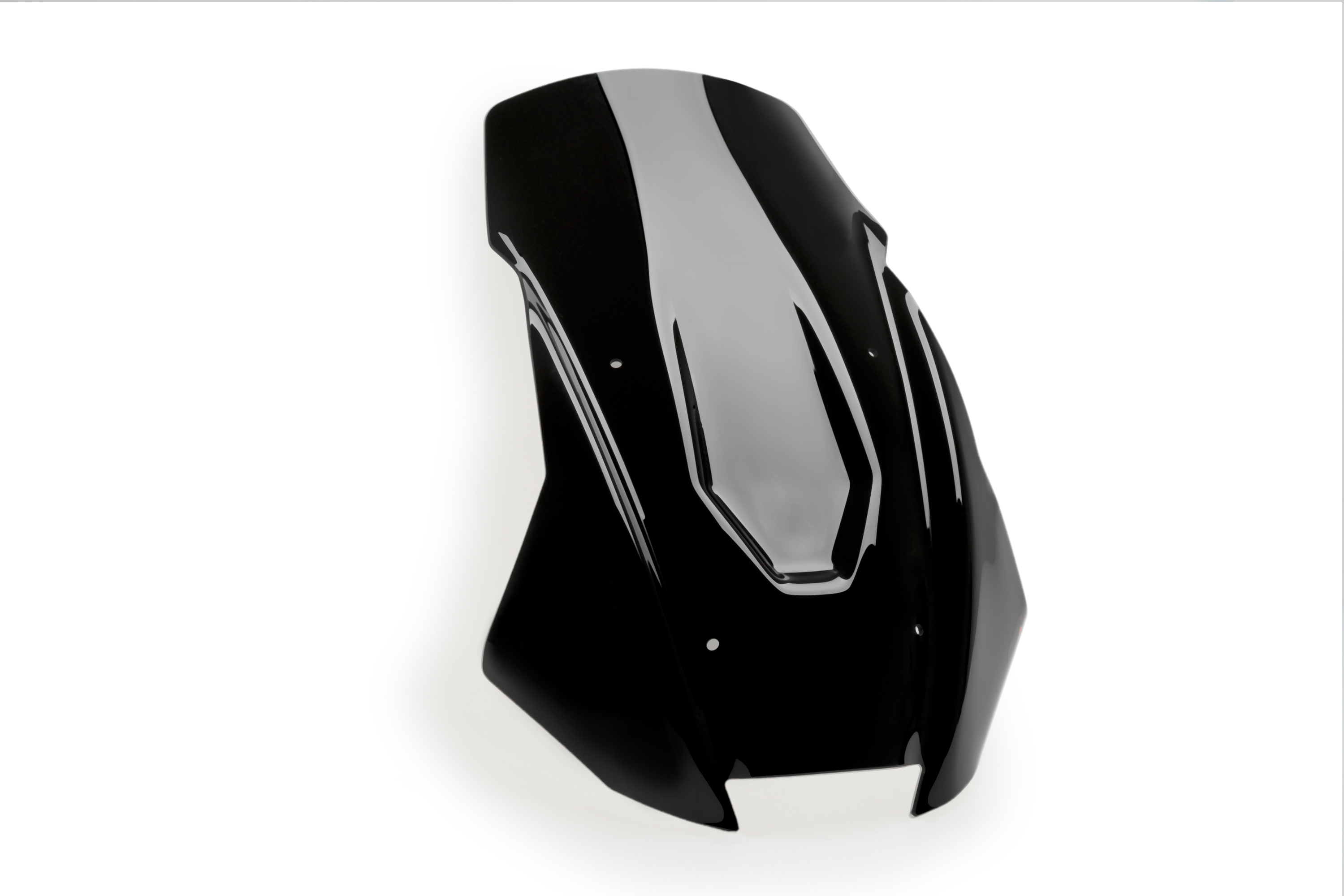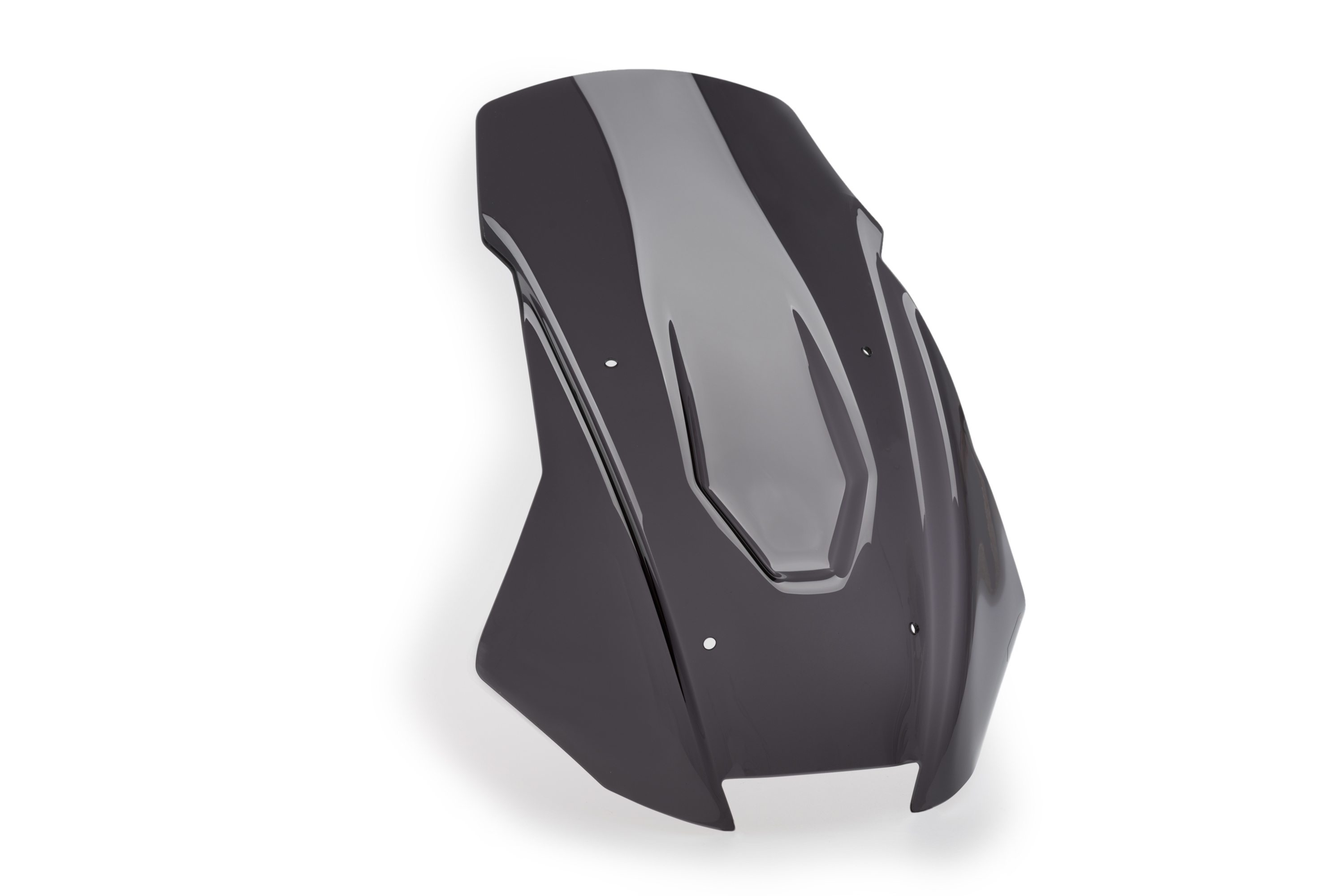 Les seves particulars formes laterals, actuen com deflectors que canalitzen el flux d'aire que entra pels costats, desviant de zones vitals del pilot. La cúpula està dissenyada 10mm més baixa respecte a l'original, diferència que potencia la personalitat de la peça i el disseny de la moto, oferint un camp visual clar per les teves rutes entre corbes i off-road. La seva altura és regulable mitjançant el mecanisme OEM. Cal destacar que en la seva posició més baixa permet la canalització de l'aire.