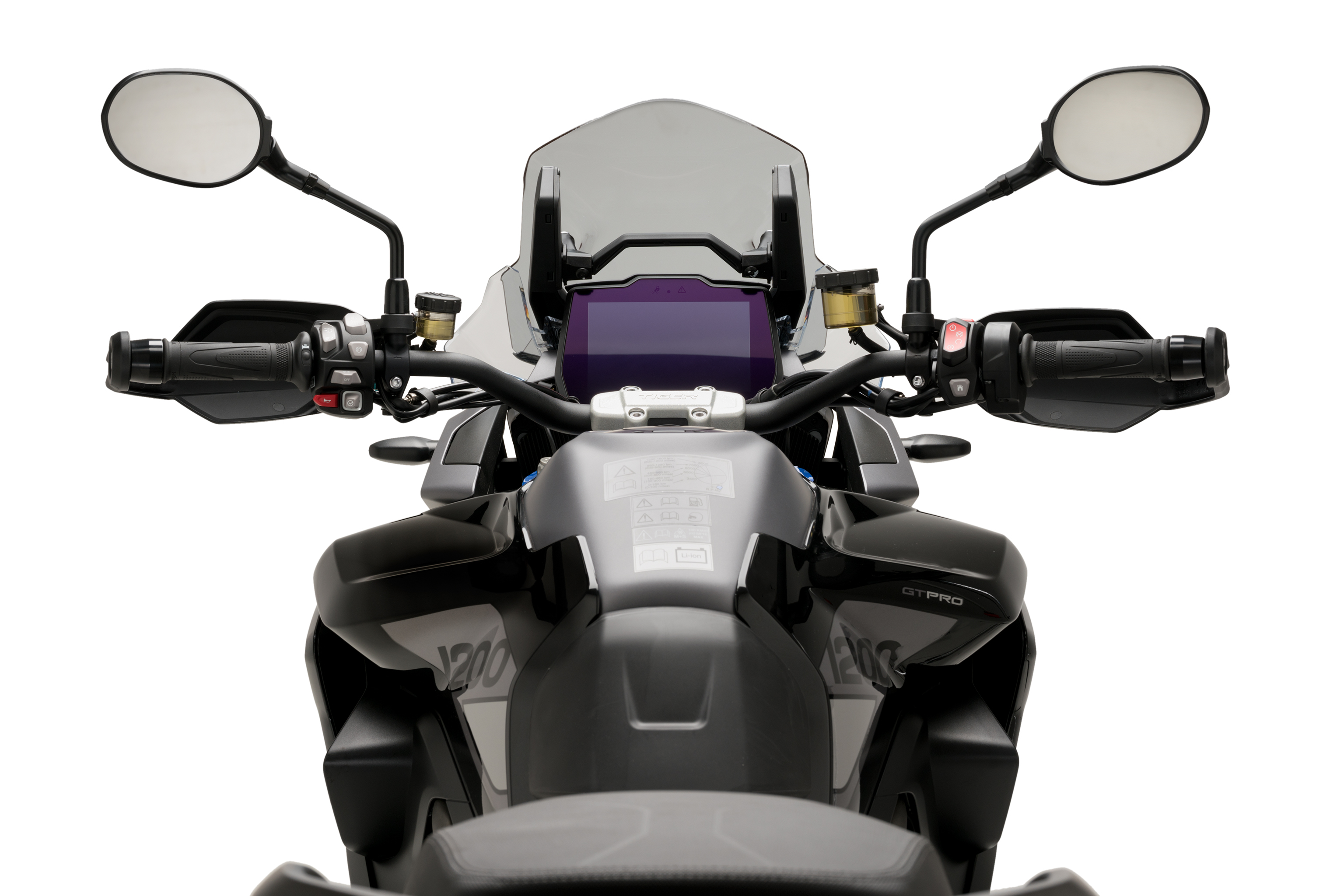 Amb unes dimensions més compactes que la pantalla original, les seves línies anguloses i agressives s'adapten perfectament amb l'estètica de la maxi trail anglesa. Oferint un camp de visió clar i net, ideal tant per a la conducció offroad com per a recorreguts urbans o sortides esportives.