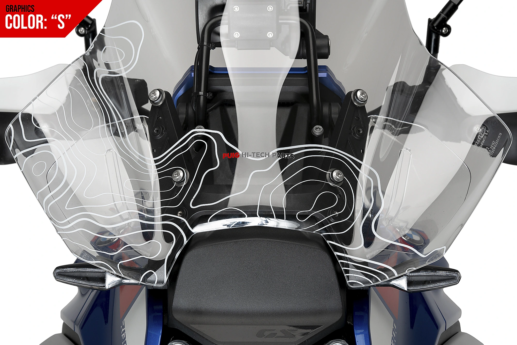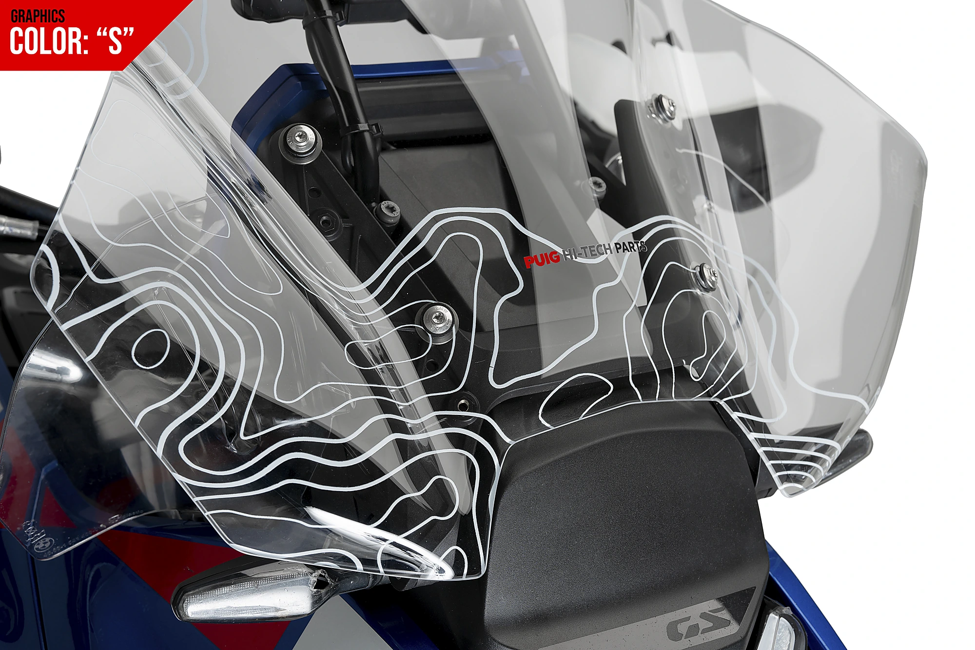 Sent 170 mm més alta que la pantalla original, la cúpula Touring de Puig millora notablement la protecció davant del vent i permet reduir les turbulències que es generen especialment a la zona dels avantbraços i del casc del pilot. El seu disseny envolta la zona del radar i presenta arestes molt definides que aporten una estètica més agressiva, d’acord amb les noves línies de la BMW R1300GS, a més de proporcionar una elevada rigidesa estructural a la peça.
