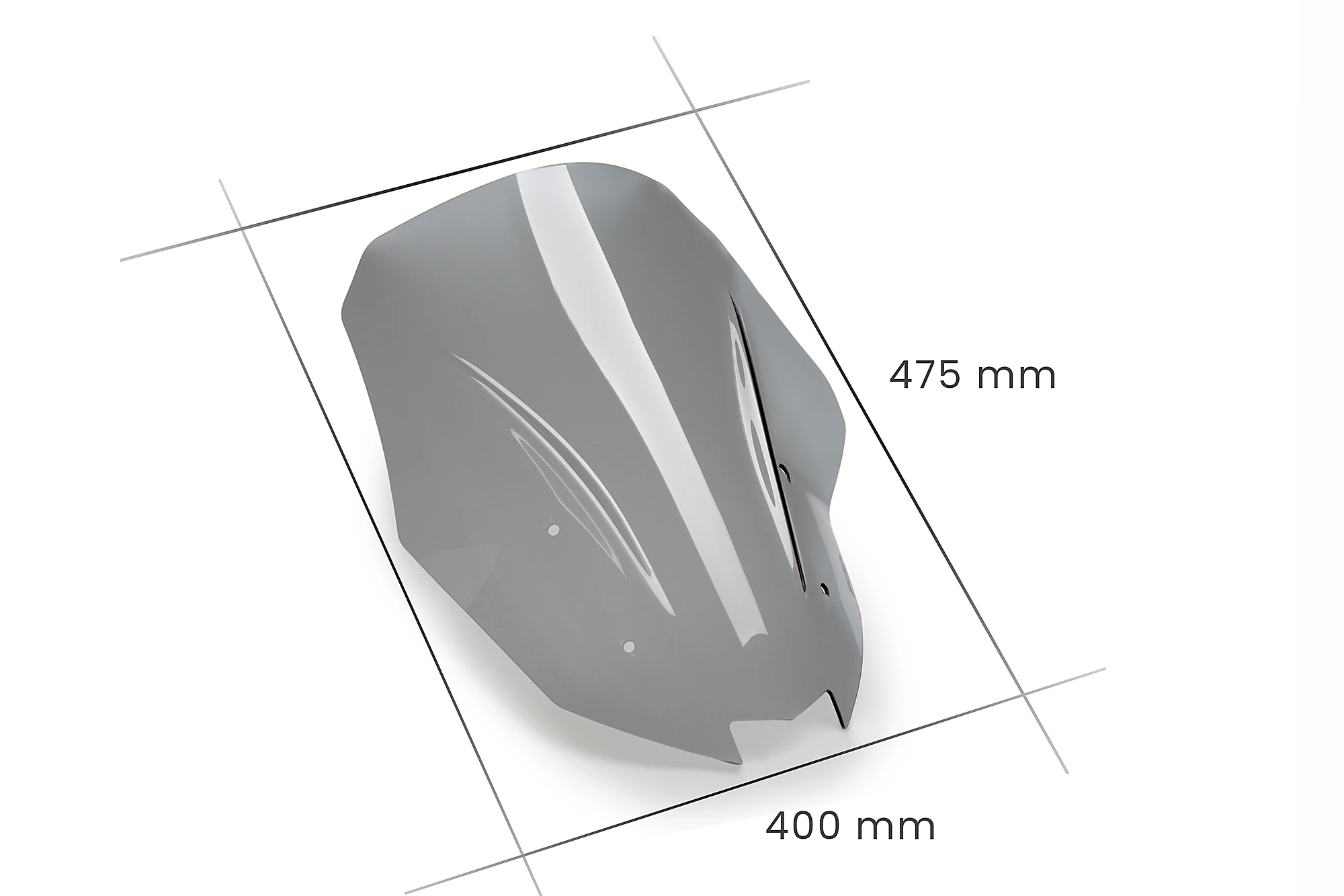Amb unes mides totals de: 400 mm d'amplada per 475 mm d'alçada, la cúpula Touring és 80 mm més alta que la cúpula original de Kawasaki.