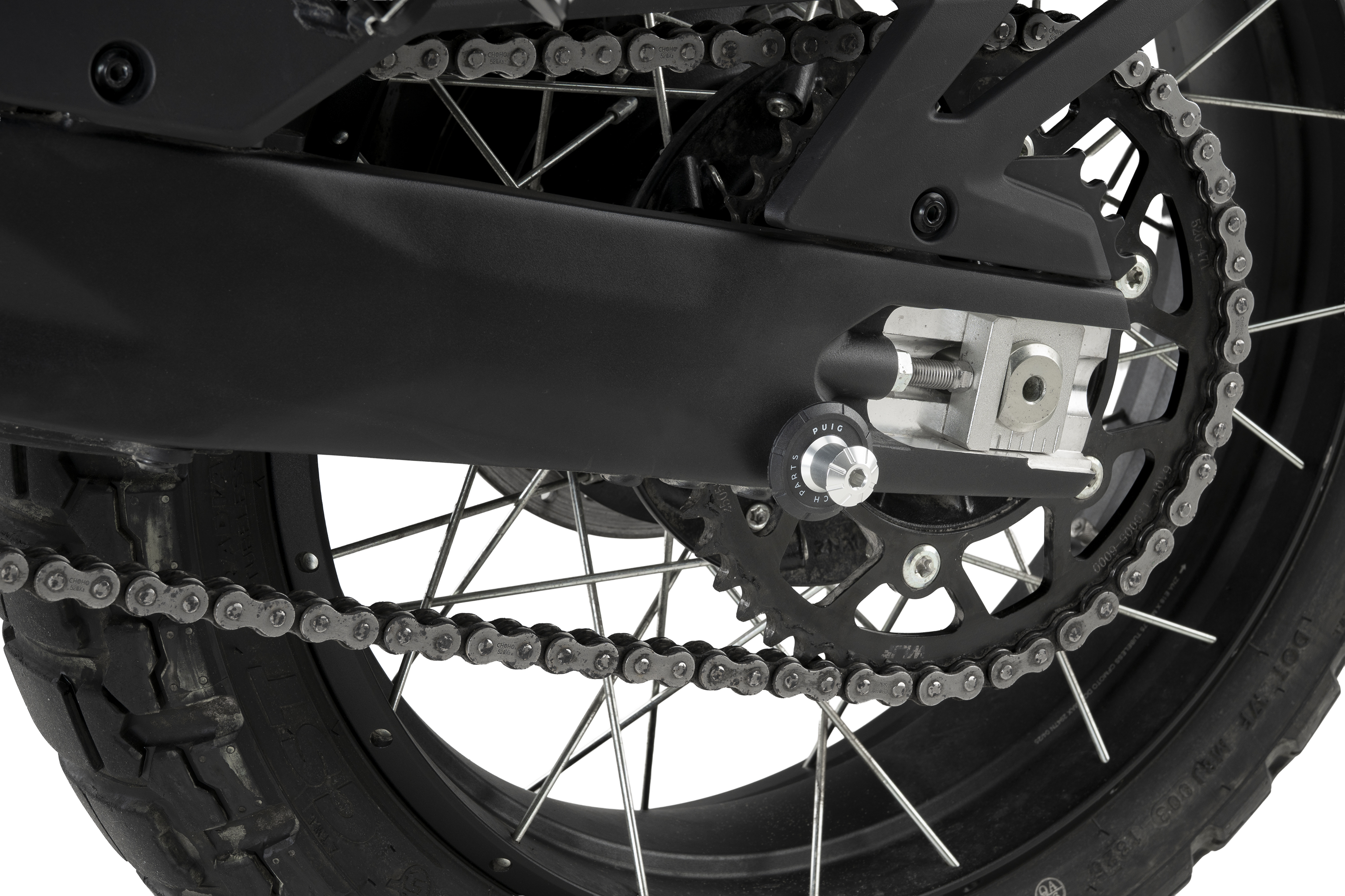 Els diàbolos serveixen com a guia d'encaix amb el cavallet per pujar la teva moto de manera fàcil, ràpida i segura. En aquest cas, us presentem el Diàbolo Pro de Puig. Fabricat a partir d'una massa d'alumini fresada i anoditzada (pes reduït de 32 gr), garantirà la protecció del basculant de possibles rascades gràcies a que ve acompanyat d'una volandera de niló de color negre amb la serigrafia Puig Hi-Tech Parts.