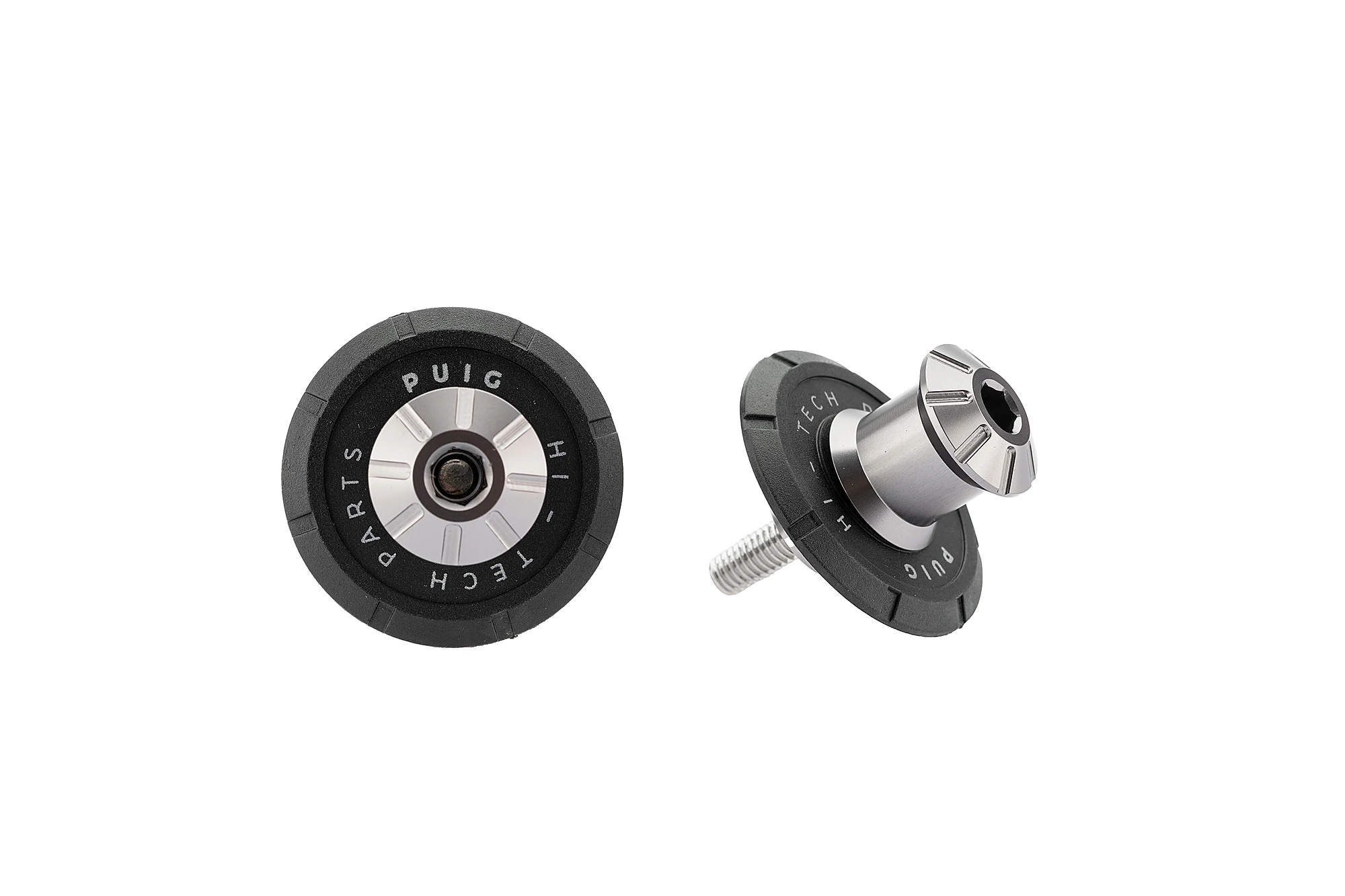 Els diàbolos serveixen com a guia d'encaix amb el cavallet per pujar la teva moto de manera fàcil, ràpida i segura. En aquest cas, us presentem el Diàbolo Pro de Puig. Fabricat a partir d'una massa d'alumini fresada i anoditzada (pes reduït de 32 gr), garantirà la protecció del basculant de possibles rascades gràcies a que ve acompanyat d'una volandera de niló de color negre amb la serigrafia Puig Hi-Tech Parts.