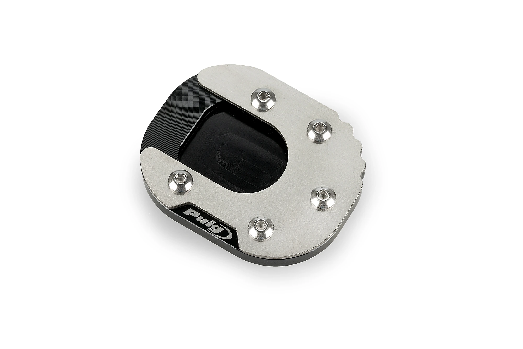 Dissenyada per prevenir possibles caigudes de la moto mentre es troba estacionada. Aquesta peça, amb una base un 100% més àmplia respecte a l'original permet estacionar en superfícies toves o irregulars amb més seguretat. Es tracta d'una peça mixta, amb una part en acer inoxidable i una altra mecanitzada a partir d'un bloc d'alumini amb anoditzat posterior. Aquests materials aporten una gran resistència mantenint un pes reduït (110-160g segons model). Aquest producte evitarà que la motocicleta pugui patir qualsevol contratemps quan no està en ús.