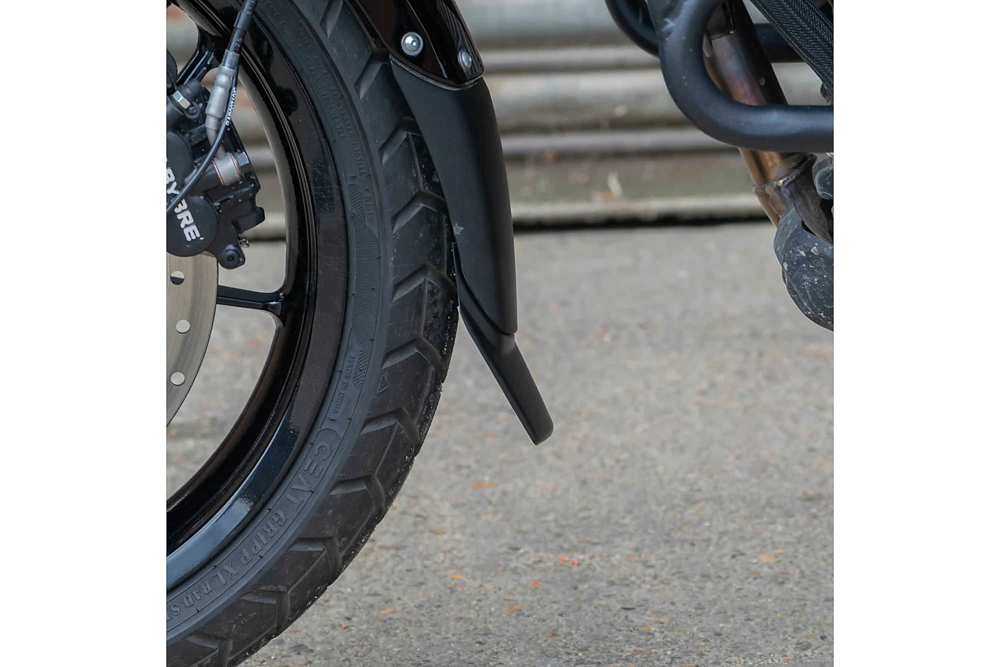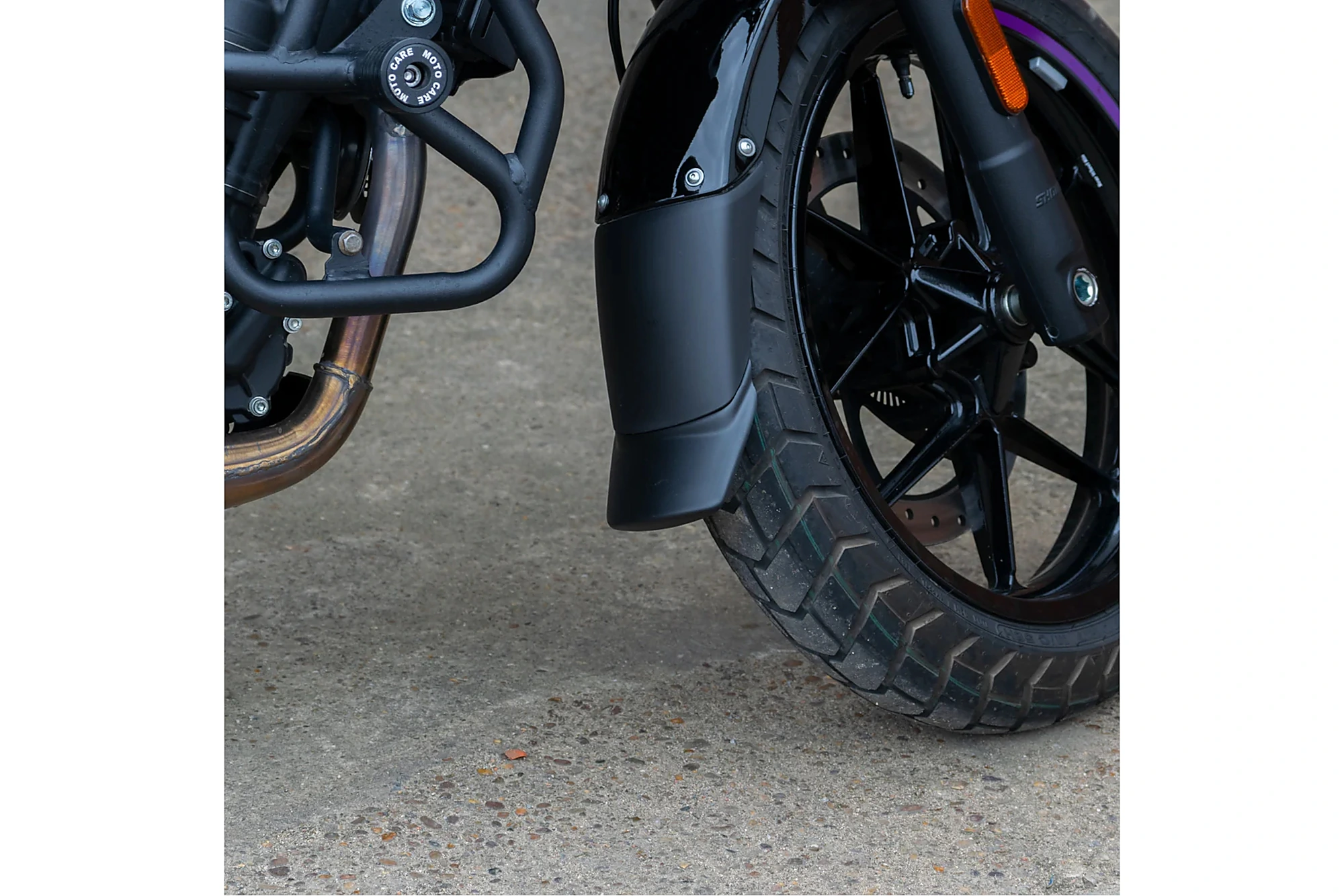Apórtale major protecció a la teva moto amb el faldó parafangs davanter de Puig. Extensió fabricada en ABS, material altament resistent als impactes, serà la protecció ideal per evitar que al pas de la teva roda pugui saltar qualsevol tipus d'element, impactant conta el cos de la teva moto o directament contra tu. El faldó se serveix en acabat negre per poder adherir-la a l'estètica de la moto sense que aquesta es vegi ressentida.