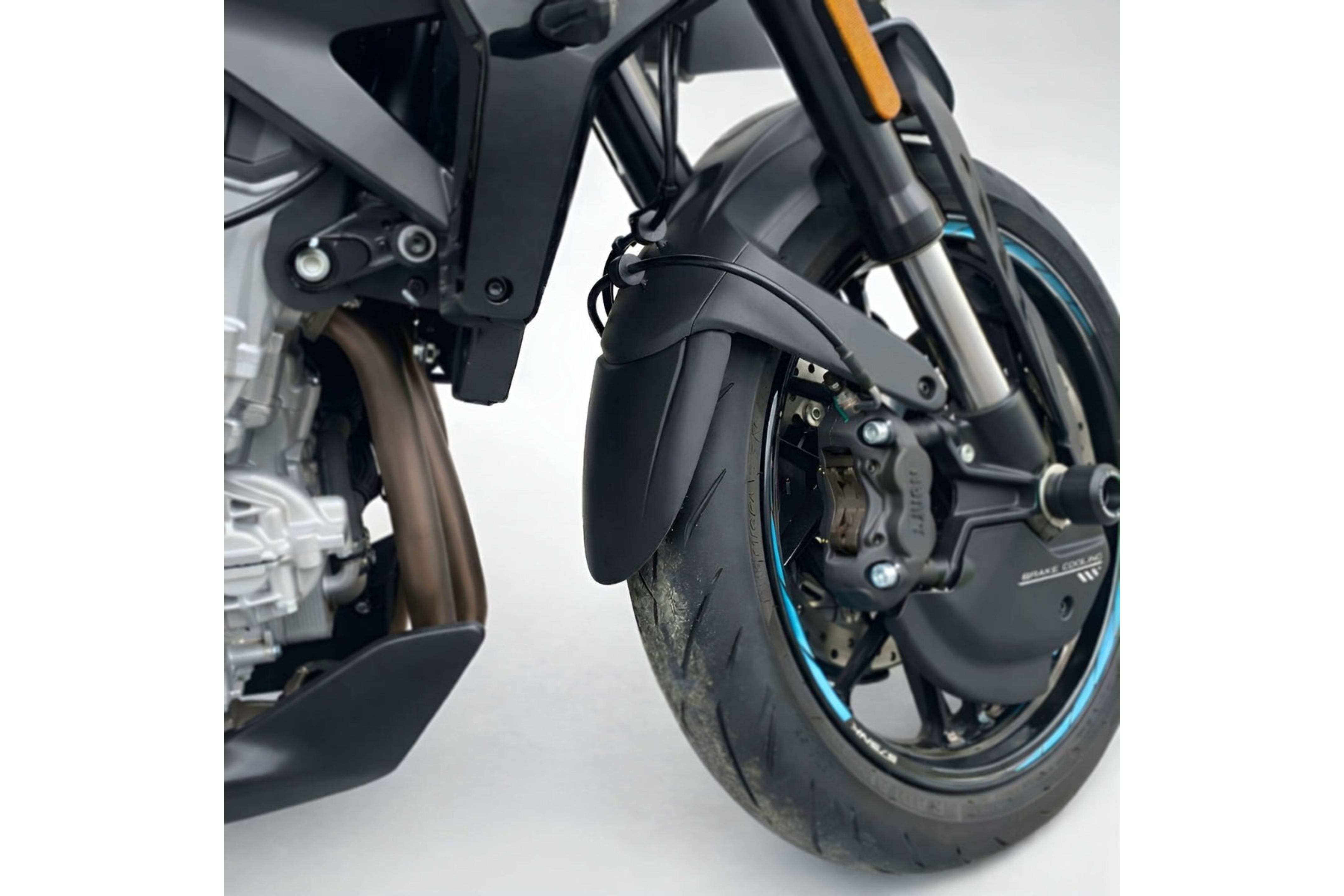Apórtale major protecció a la teva moto amb el faldó parafangs davanter de Puig. Extensió fabricada en ABS, material altament resistent als impactes, serà la protecció ideal per evitar que al pas de la teva roda pugui saltar qualsevol tipus d'element, impactant conta el cos de la teva moto o directament contra tu. El faldó se serveix en acabat negre per poder adherir-la a l'estètica de la moto sense que aquesta es vegi ressentida.
