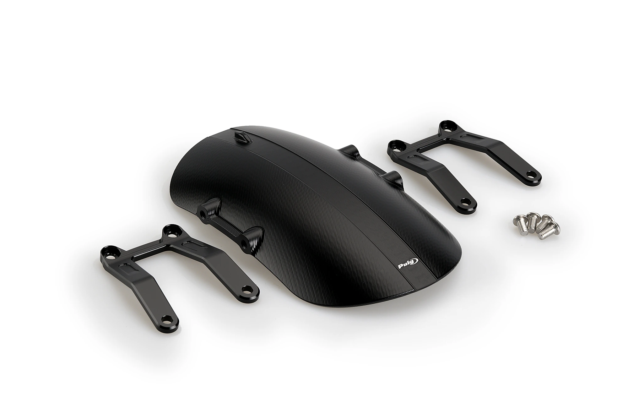 Les seves superfícies es mecanitzen partint d'un bloc d'alumini, deixant constància d'això les marques superficials que confereixen un acabat exclusiu d'aquest mètode de treball. El anoditzat final a dos colors, negre per al parafangs i plata per als suports, donen un toc d'elegància a el conjunt.
