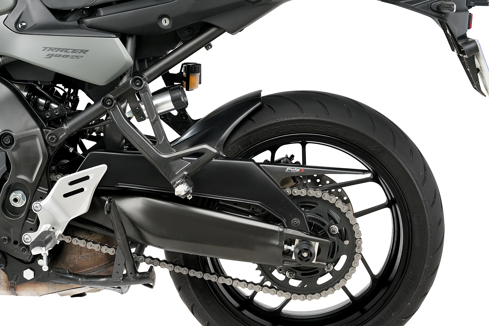 El disseny d'arestes marcades s'integra perfectament amb l'estil elegant i esportiu de la Tracer i incorpora un cobrecadenes perquè la cadena de la moto estigui sempre protegida i ben greixada.