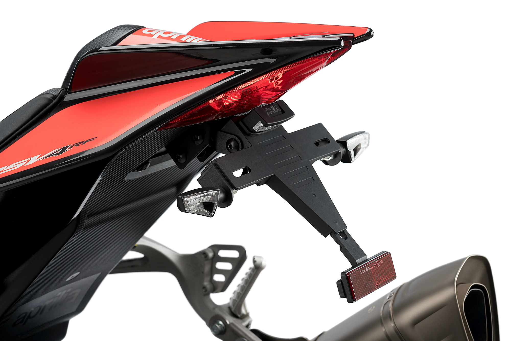 Substitueix el portamatrícules original de la teva moto pel suport portamatrícules de Puig, que, gràcies a la seva ubicació elevada, proporciona un aspecte esportiu a la teva motocicleta. El conjunt combina peces d’acer amb acabat en pintura epoxi i elements de poliamida, aconseguint una notable reducció de pes en comparació amb el suport original.