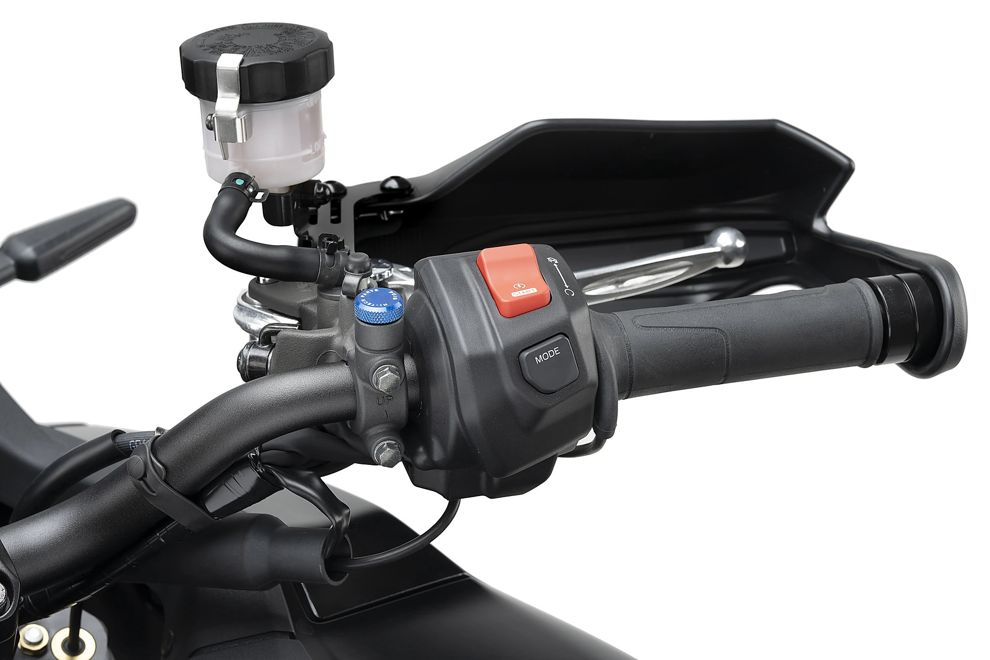 El retrovisor no homologat està dissenyat per muntar-se a l’extrem del manillar, oferint una solució funcional i estètica que s’integra perfectament amb la línia de la motocicleta. En comparació amb els models actuals, incorpora un nou grau de regulació que millora notablement l’adaptabilitat a les preferències de l’usuari. Aquest sistema permet inclinar el braç del mirall per ajustar amb més precisió l’angle de visió, mantenint alhora el gir respecte al manillar per a una correcta orientació. L’ajust final es realitza mitjançant una ròtula d’alta precisió que facilita una regulació fina i segura, garantint estabilitat durant la conducció i evitant moviments indesitjats provocats per vibracions.