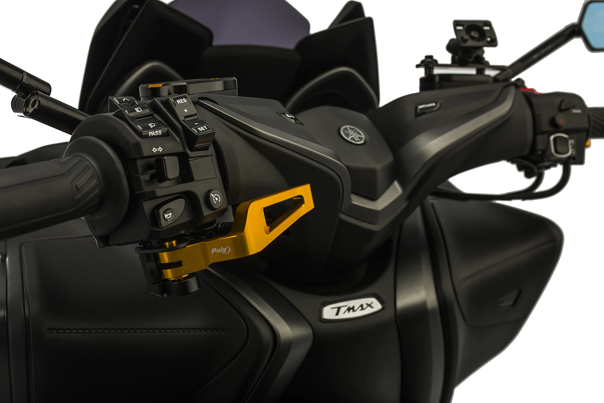 El fre d'aparcament de Puig, disponible en diversos models de maxiescúter, reemplaça a l'original i dota al vehicle d'un detall de personalització més elegant i alhora esportiu. Està fabricat en alumini i s'ofereix en acabat de color blau, or, plata i vermell.