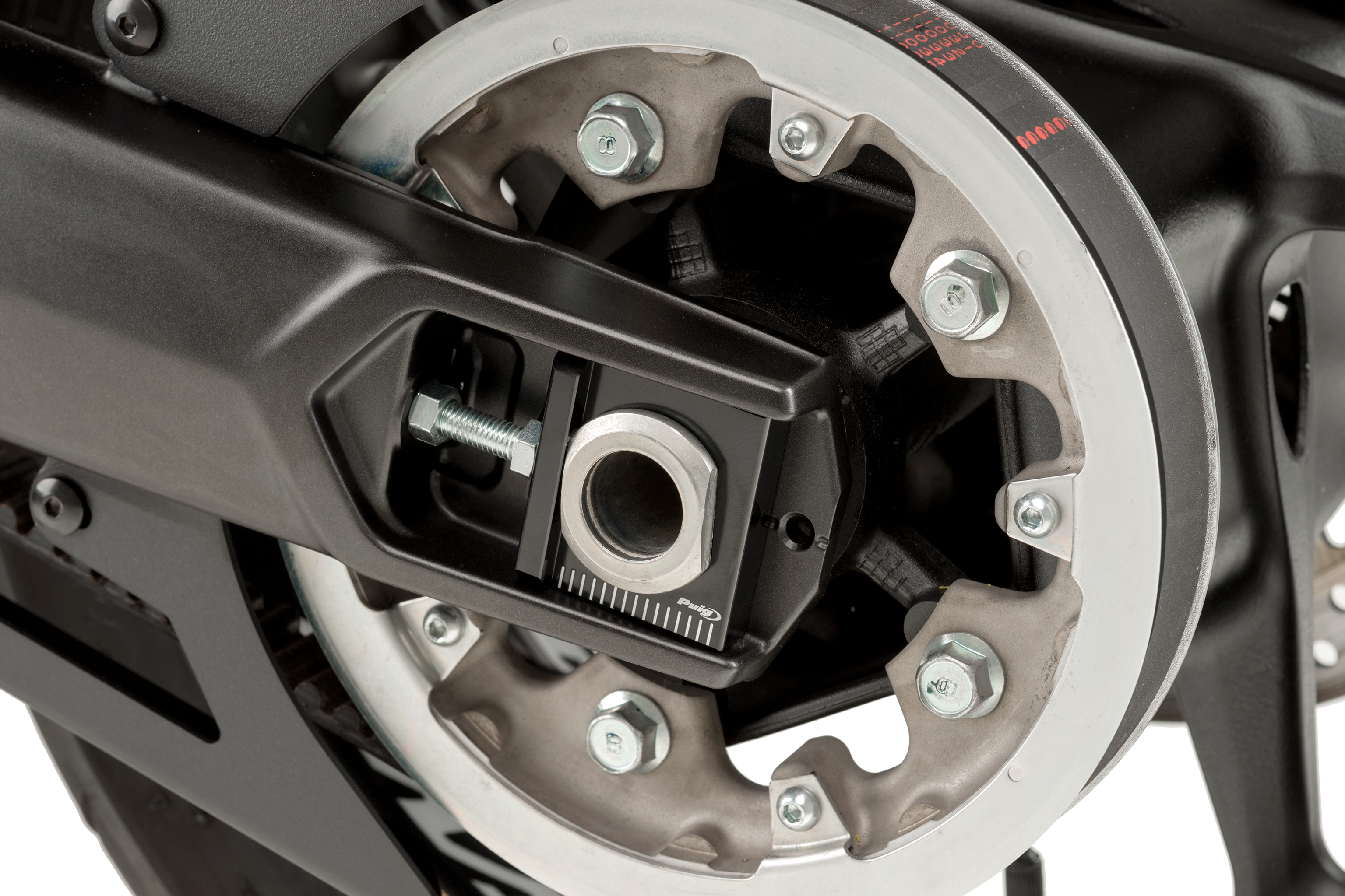 El joc de tensors per a la roda del darrere de Yamaha T-Max de Puig permeten ajustar amb precisió la corretja de l'escúter supervendes japonès. Estan fabricats en en alumini i estan mecanitzats amb una escala de mesura graduada, que permet corregir amb precisió la tensió de la corretja de transmissió. En el nostre catàleg comptem amb un disseny específic tant per a les versions a partir de l'any 2012 com per a les unitats a partir de l'any 2017, disponibles en color negre, que a més de ser funcionals milloren la presentació del braç posterior de l'escúter esportiu de Yamaha.