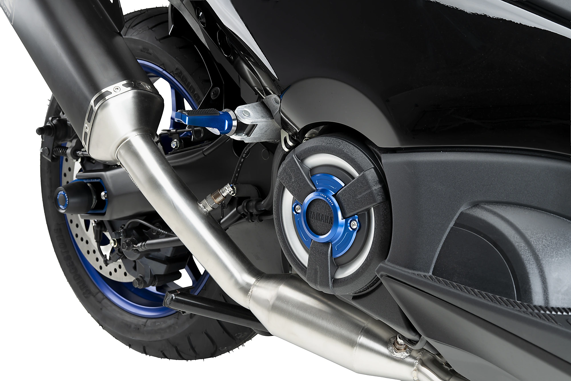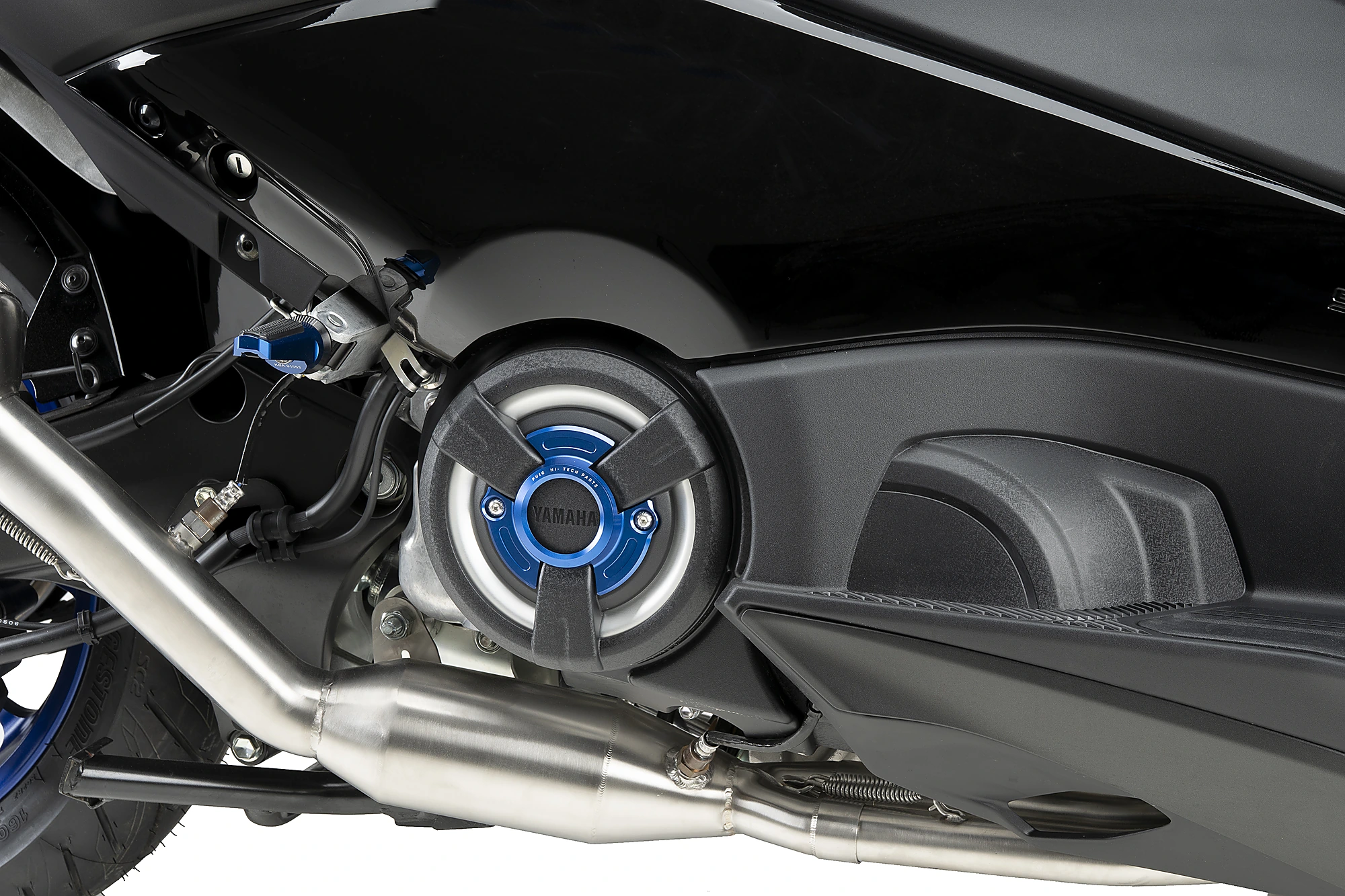 La tapa d'embragatge Hi-Tech Parts de Puig per a Yamaha T-Max reforça l'estètica del maxiescúter esportiu japonès, que compta així amb una imatge més cridanera i personalitzada.
