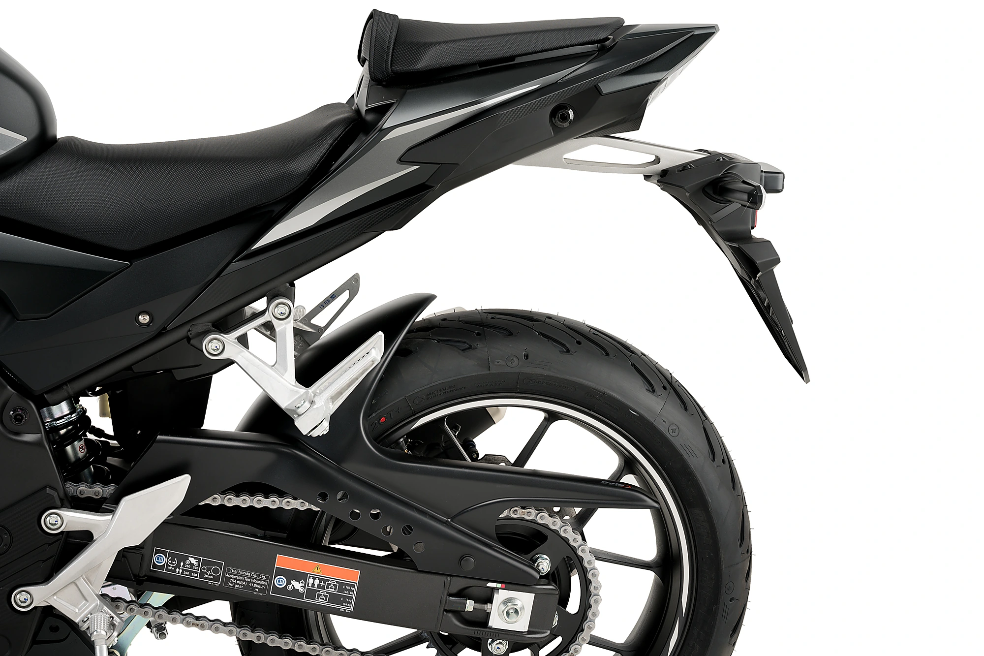 Puig hat sich nicht nur um den praktischen Aspekt gekümmert, sondern auch um die Ästhetik des hinteren Kotflügels, der sich mit seinen schlichten und sportlichen Linien perfekt in das Design dieser vielseitigen Honda-Modelle einfügt.