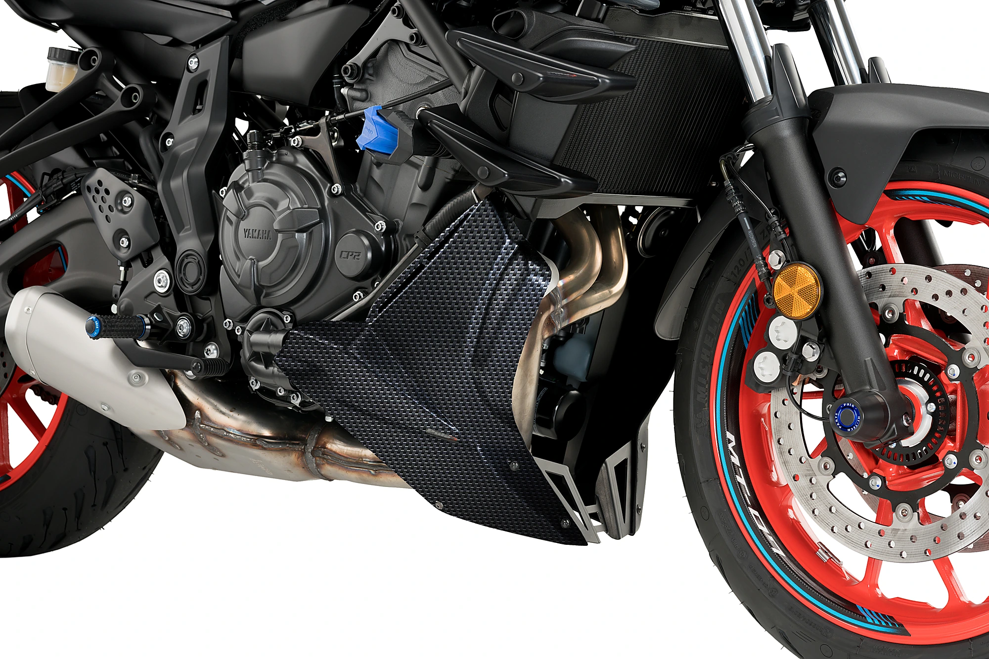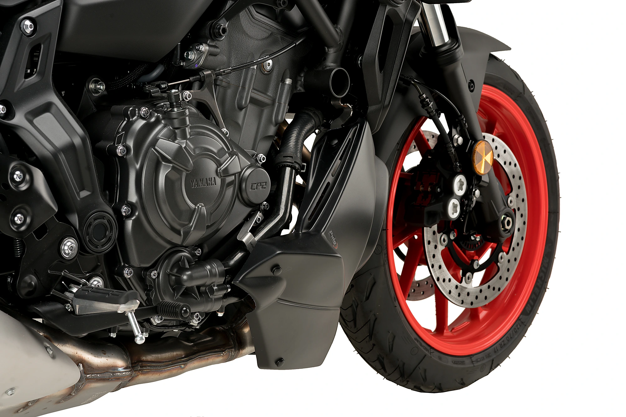 Der neue Puig-Motorspoiler für die Yamaha MT-07 2021 ist das Ergebnis einer großartigen Arbeit der Designer des katalanischen Herstellers mit dem klaren Ziel, eines der am wenigsten ästhetischen Teile dieses Motorradmodells, den Katalysator für den Auspuff, zu schützen, abzudecken und zu verbergen.