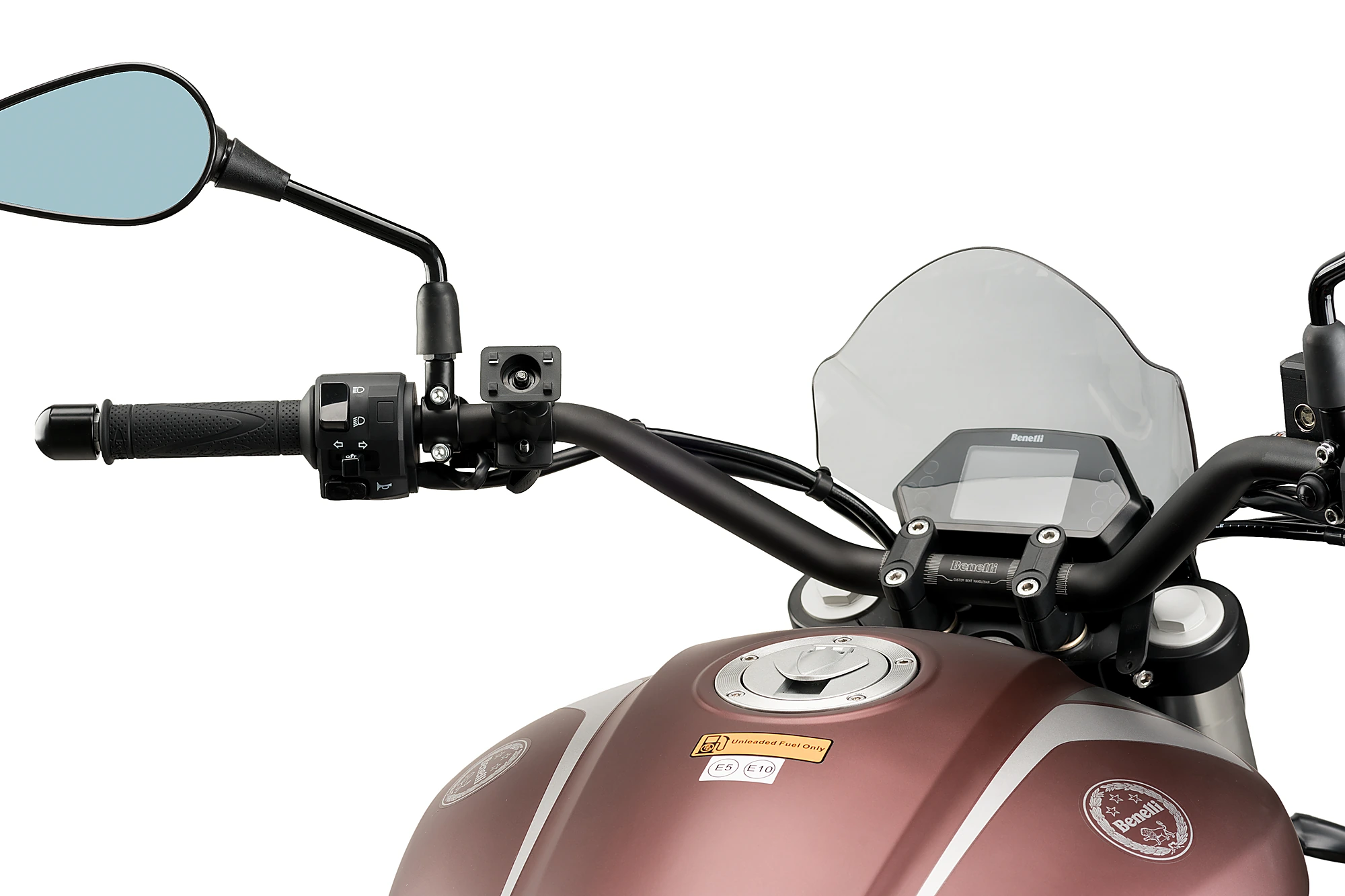 Sie können die Handyhalterung am Sockel des Spiegels, an der Spiegelstange, am Lenker und an der Sattelstütze des Motorrads anbringen. Bei letzterer ist das Handy besser gegen mögliche Stöße oder Schlaglöcher auf der Straße geschützt.
