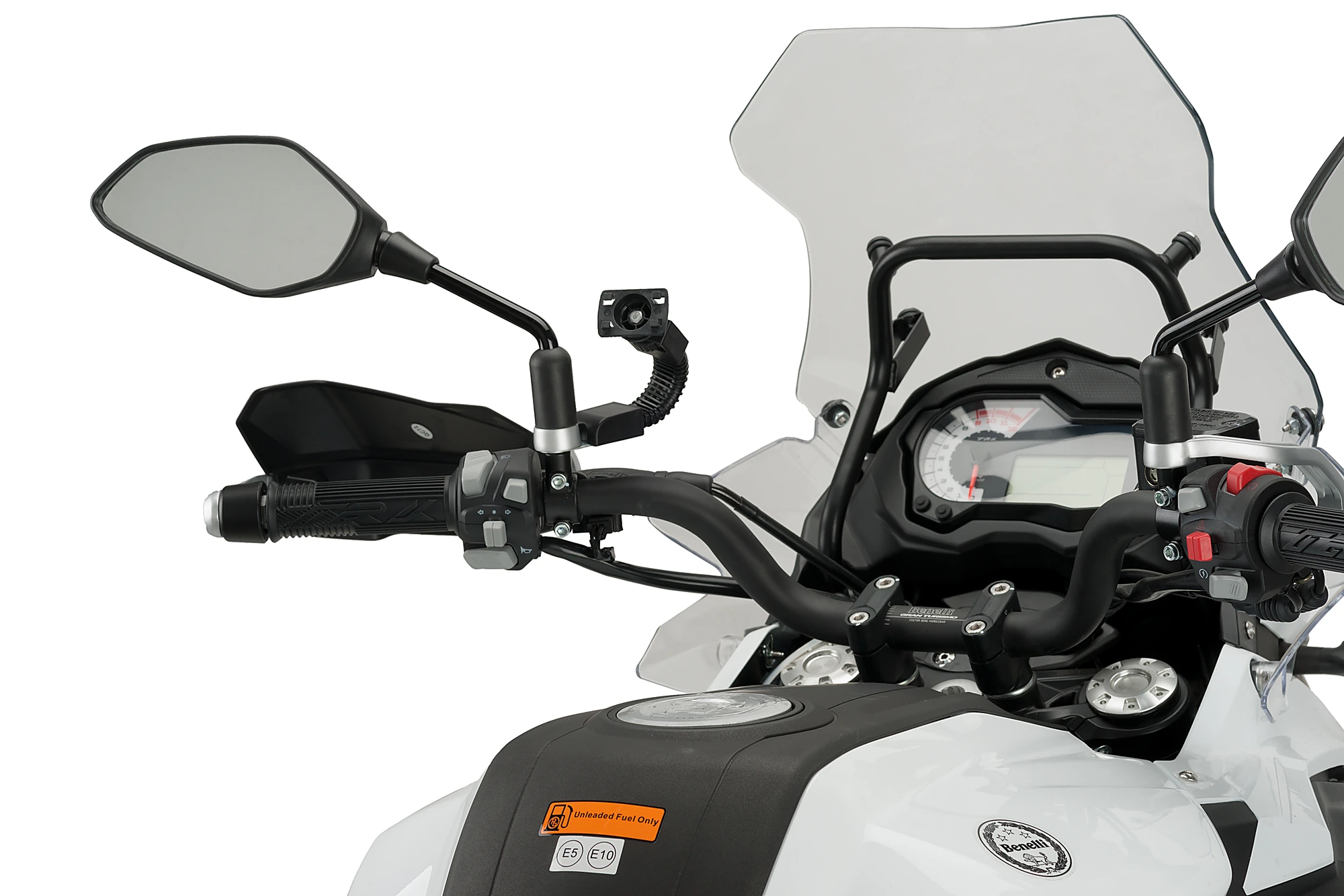 Sie können die Handyhalterung am Sockel des Spiegels, an der Spiegelstange, am Lenker und an der Sattelstütze des Motorrads anbringen. Bei letzterer ist das Handy besser gegen mögliche Stöße oder Schlaglöcher auf der Straße geschützt.