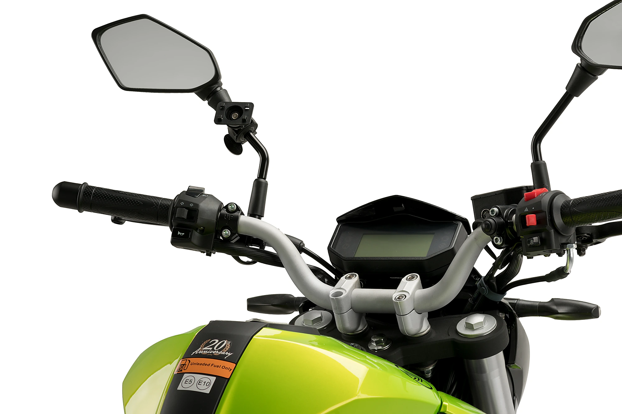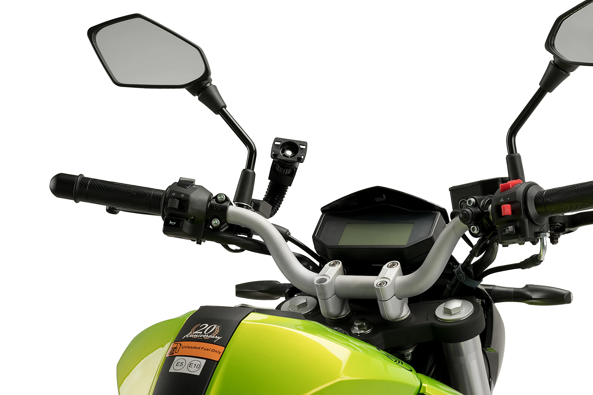 Sie können die Handyhalterung am Sockel des Spiegels, an der Spiegelstange, am Lenker und an der Sattelstütze des Motorrads anbringen. Bei letzterer ist das Handy besser gegen mögliche Stöße oder Schlaglöcher auf der Straße geschützt.