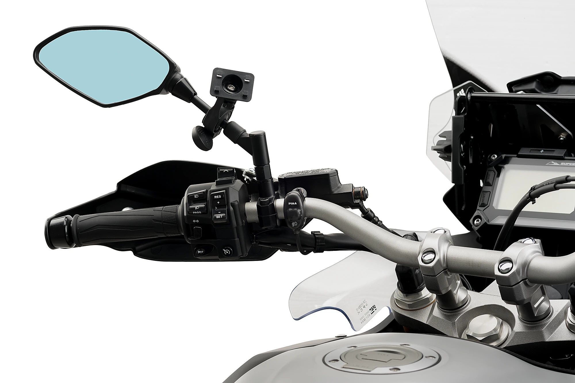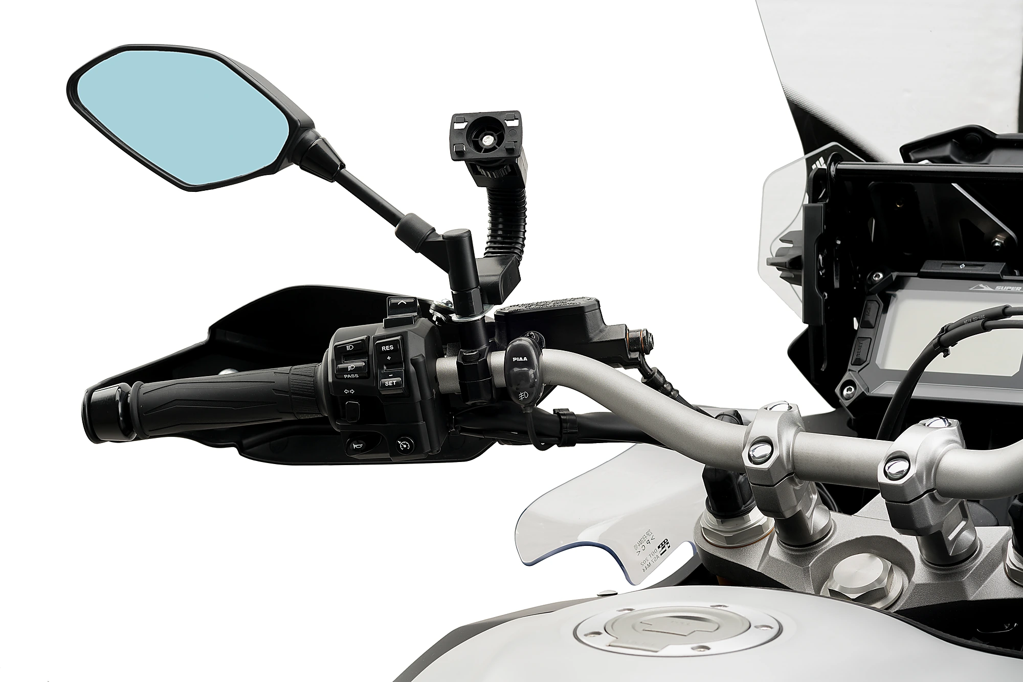 Sie können die Handyhalterung am Sockel des Spiegels, an der Spiegelstange, am Lenker und an der Sattelstütze des Motorrads anbringen. Bei letzterer ist das Handy besser gegen mögliche Stöße oder Schlaglöcher auf der Straße geschützt.