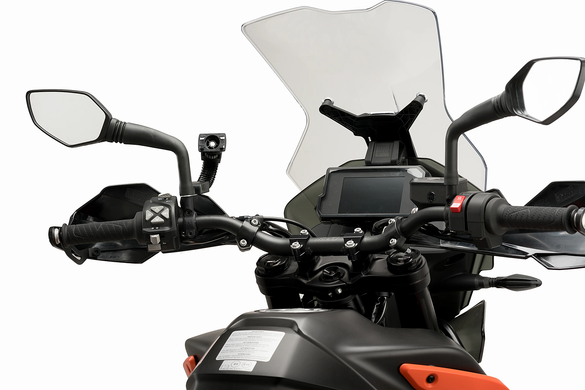 Sie können die Handyhalterung am Sockel des Spiegels, an der Spiegelstange, am Lenker und an der Sattelstütze des Motorrads anbringen. Bei letzterer ist das Handy besser gegen mögliche Stöße oder Schlaglöcher auf der Straße geschützt.