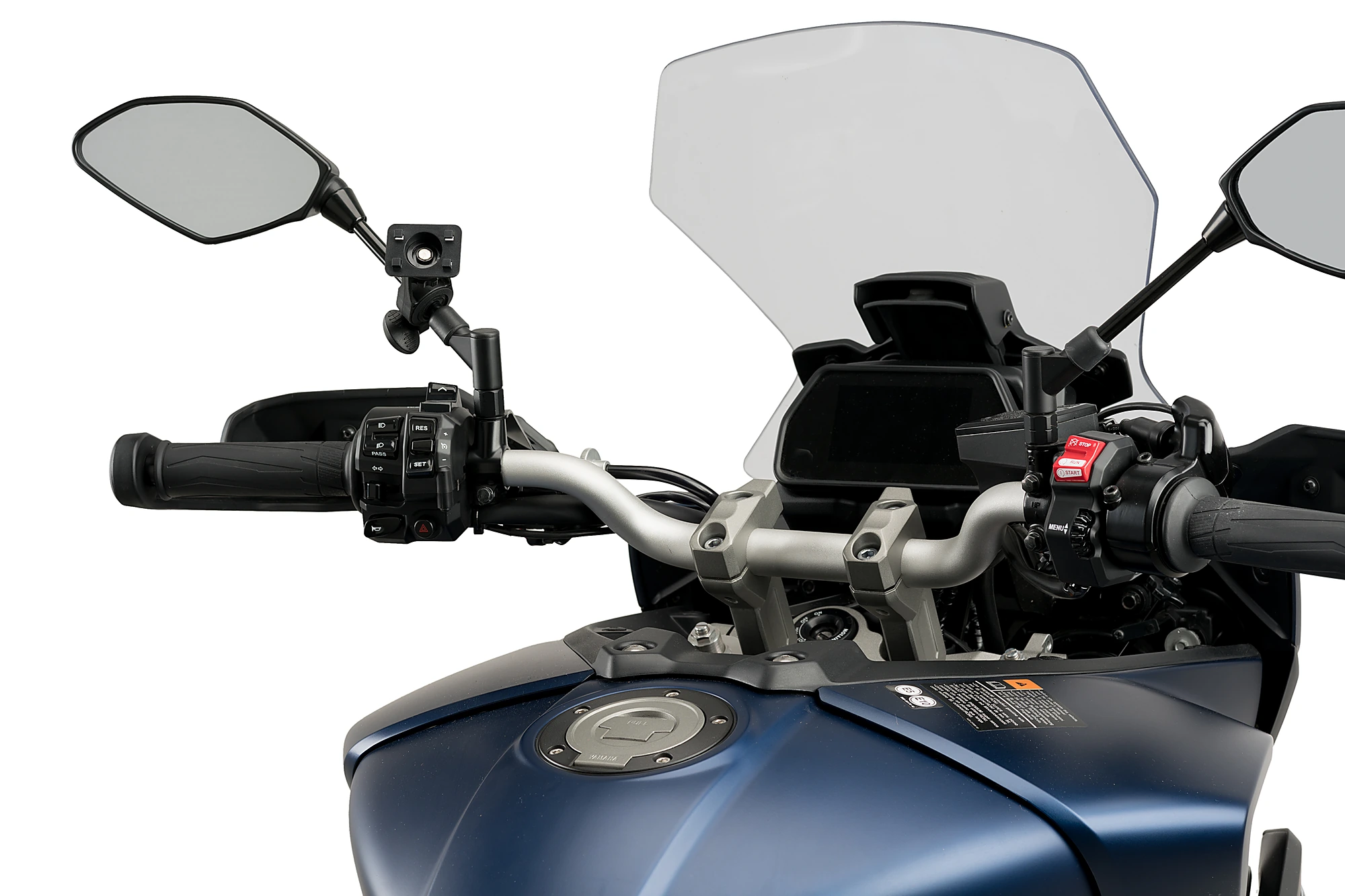 Sie können die Handyhalterung am Sockel des Spiegels, an der Spiegelstange, am Lenker und an der Sattelstütze des Motorrads anbringen. Bei letzterer ist das Handy besser gegen mögliche Stöße oder Schlaglöcher auf der Straße geschützt.