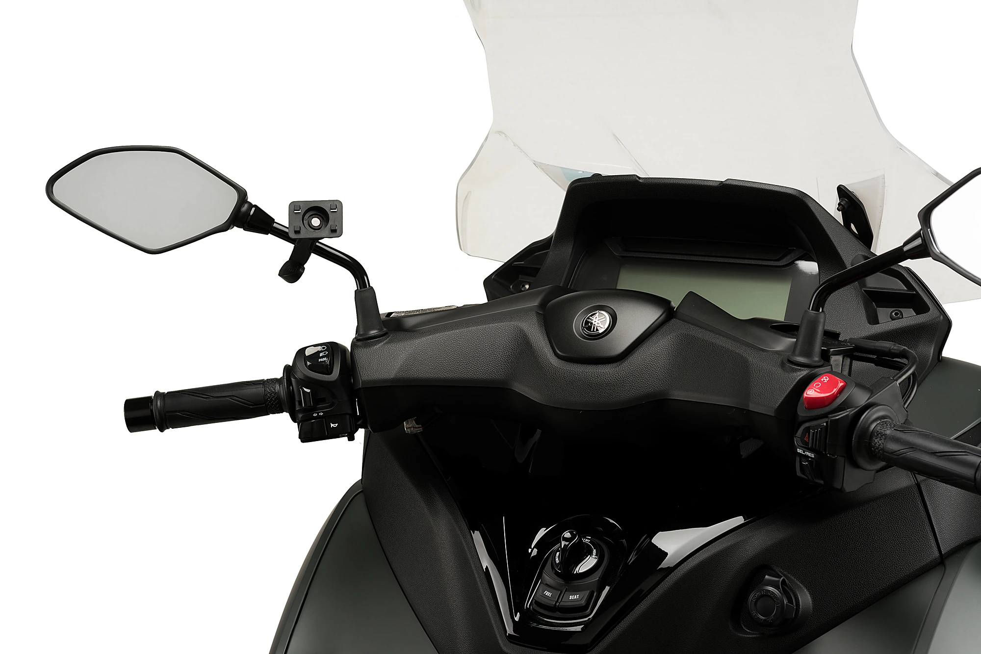 Sie können die Handyhalterung am Sockel des Spiegels, an der Spiegelstange, am Lenker und an der Sattelstütze des Motorrads anbringen. Bei letzterer ist das Handy besser gegen mögliche Stöße oder Schlaglöcher auf der Straße geschützt.