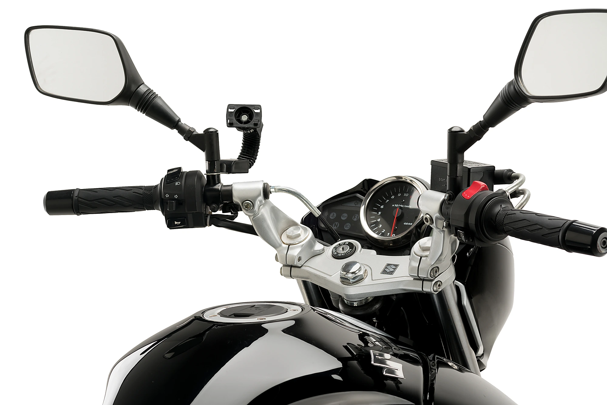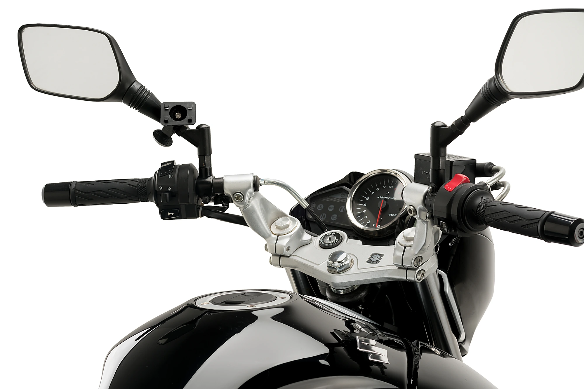 Sie können die Handyhalterung am Sockel des Spiegels, an der Spiegelstange, am Lenker und an der Sattelstütze des Motorrads anbringen. Bei letzterer ist das Handy besser gegen mögliche Stöße oder Schlaglöcher auf der Straße geschützt.
