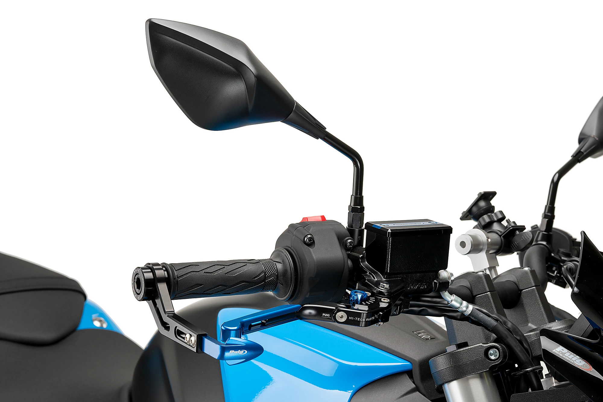Mit dem Design des Bremshebelschutzes zeigt PUIG, dass der Schutz der Fahrer mit dem eigentlichen Design des Motorrades zusammengehen kann. Die Priorität lag darauf, den Bremshebelschutz so schlicht wie möglich zu halten. Das System hinter den Bremshebeln ist sehr ausgeklügelt. Es ist in alle vier Richtungen verstellbar. Oben-Unten und Rechts-Links.