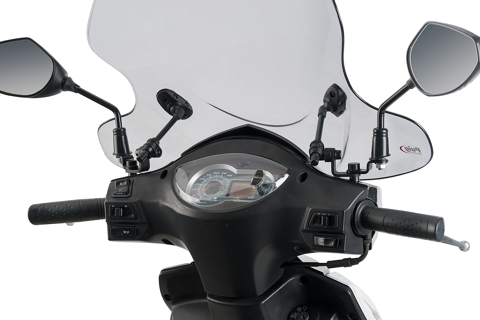 Puig bietet das City-Touring mit speziellen Beschlägen für die perfekte Montage am Roller an. Falls Sie in Ihrem Katalog kein Roller-spezifisches Windschutzscheibenmodell finden können, empfehlen wir Ihnen den Kauf eines Universal-Warheads.