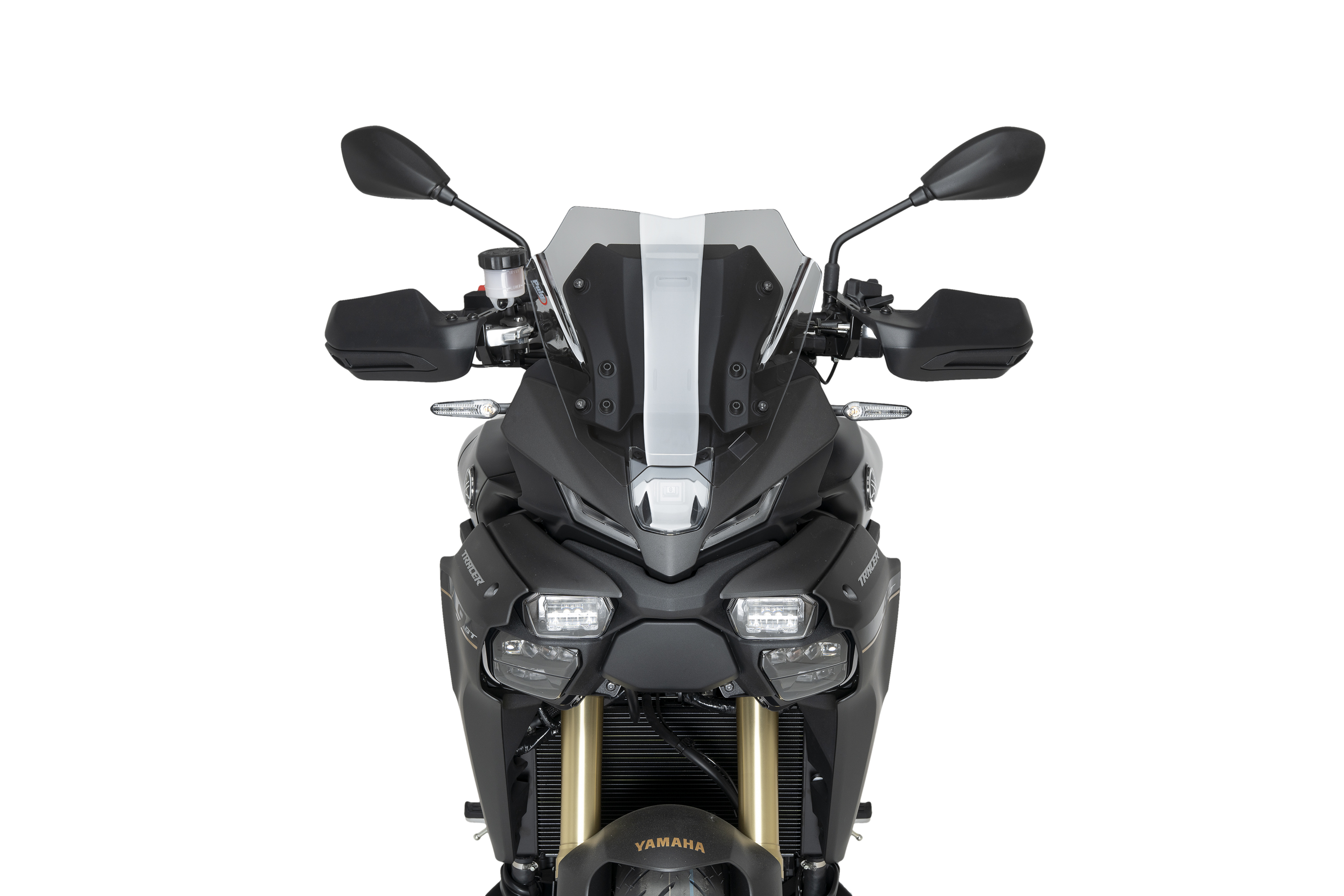 Die Form der Scheibe passt sich perfekt der Front des Motorrads an, mit einer gut definierten unteren Passform und zwei markanten Linien, die ihr einen sportlichen, eleganten und dezenten Charakter verleihen, der im perfekten Einklang mit dem ursprünglichen Design der Yamaha Tracer steht.