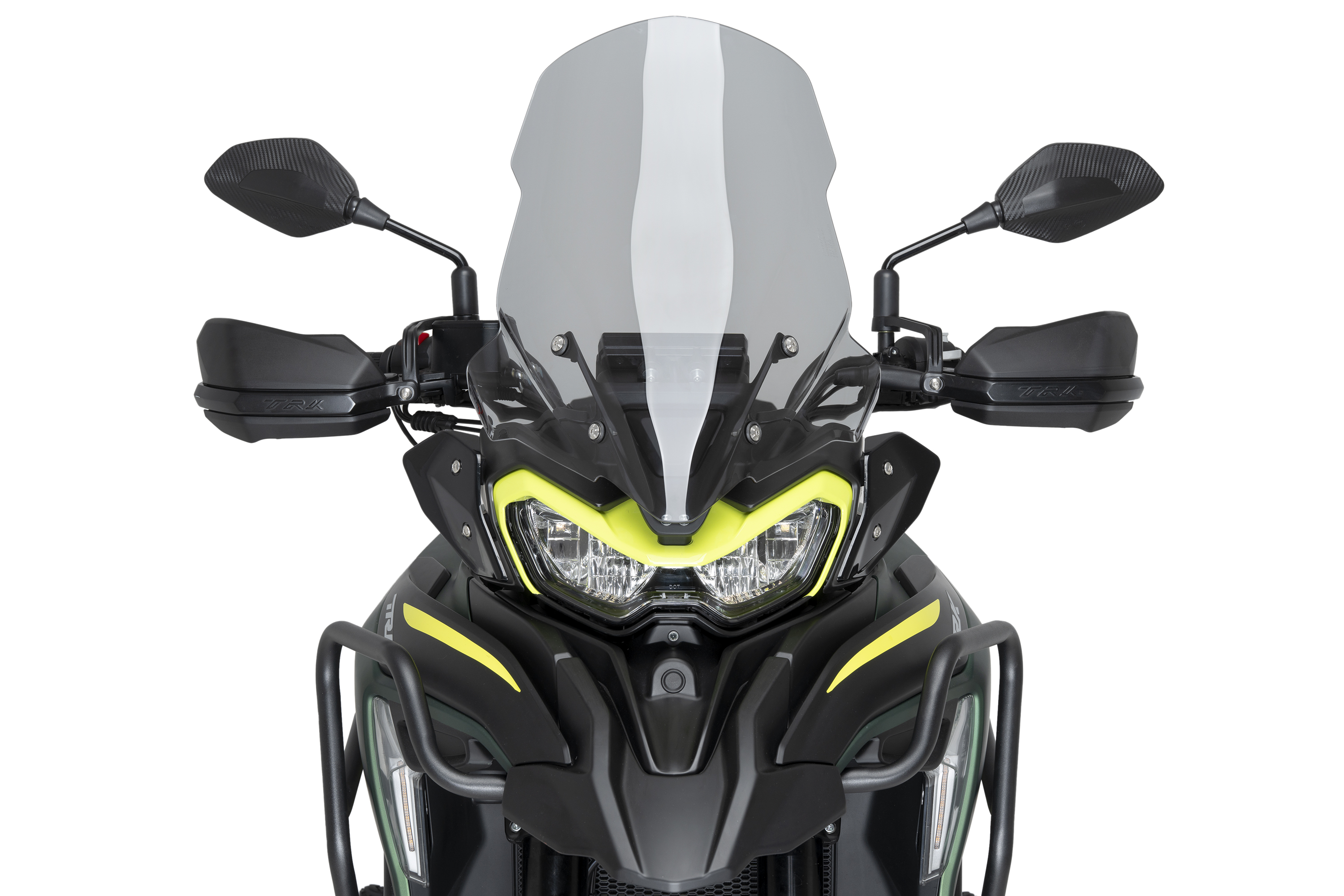 Die speziell für den Benelli TRK 702/702X'23 entworfenen Linien sind von der Vorderseite des TRK selbst inspiriert und behalten den aggressiven und sportlichen Stil des beliebten Trailbikes bei, mit zwei diagonalen Kanten, die die Mitte des Fahrrads markieren scharfer Weg. , was der Tourenscheibe einen attraktiven, individuellen Charakter verleiht.