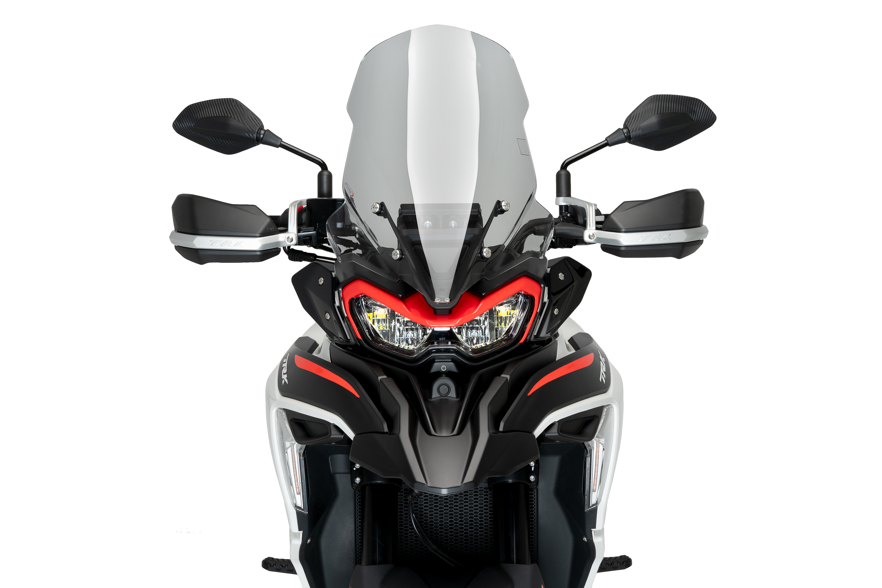 Die von Puig in Barcelona hergestellten Touringscheiben wurden mit dem Ziel entwickelt, den Fahrer aerodynamisch zu schützen, ohne seine Sicht auf den gelände zu beeinträchtigen. Darüber hinaus passen diese Scheiben dank ihrer großen Farbpalette und unterschiedlichen Größen perfekt zum Abenteuerstil und zur Ästhetik der Trail-Modelle.