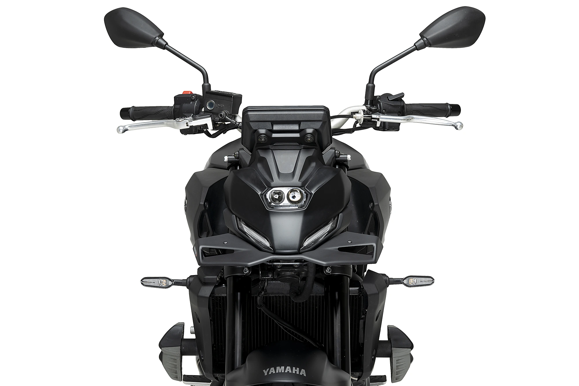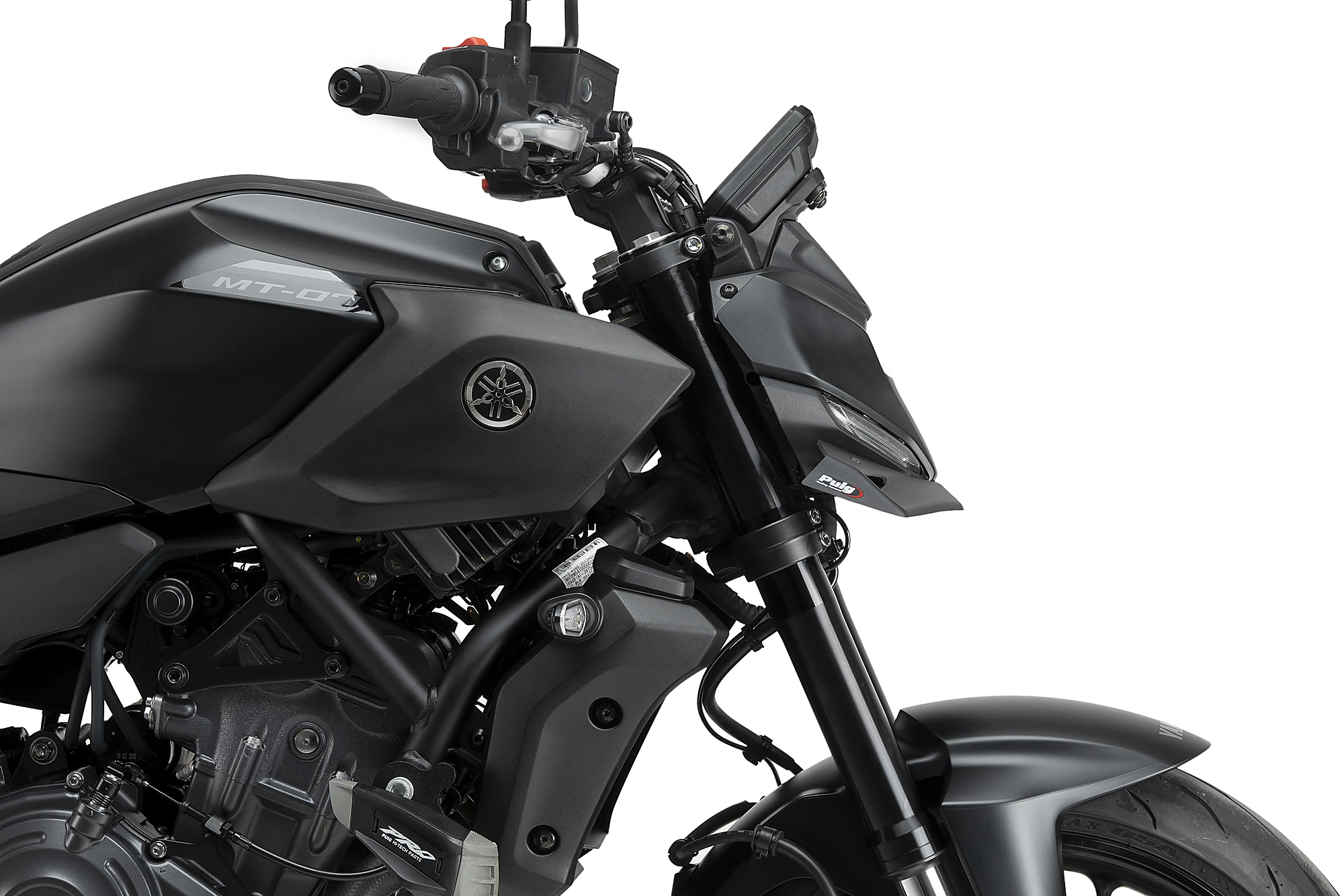 Was die Aerodynamik betrifft, so leitet der neue Naked-Frontspoiler von Puig die Luft, die den Kühler erreicht, nach vorne und sorgt dank seiner Formen für fast 2 kg Abtrieb am Vorderrad, was wiederum einen Anti-Wheelie-Effekt, einen Anti-Shimmie-Effekt (mehr Stabilität bei hohen Geschwindigkeiten), mehr Gelassenheit beim Bremsen und mehr Stabilität bei Richtungswechseln bewirkt.