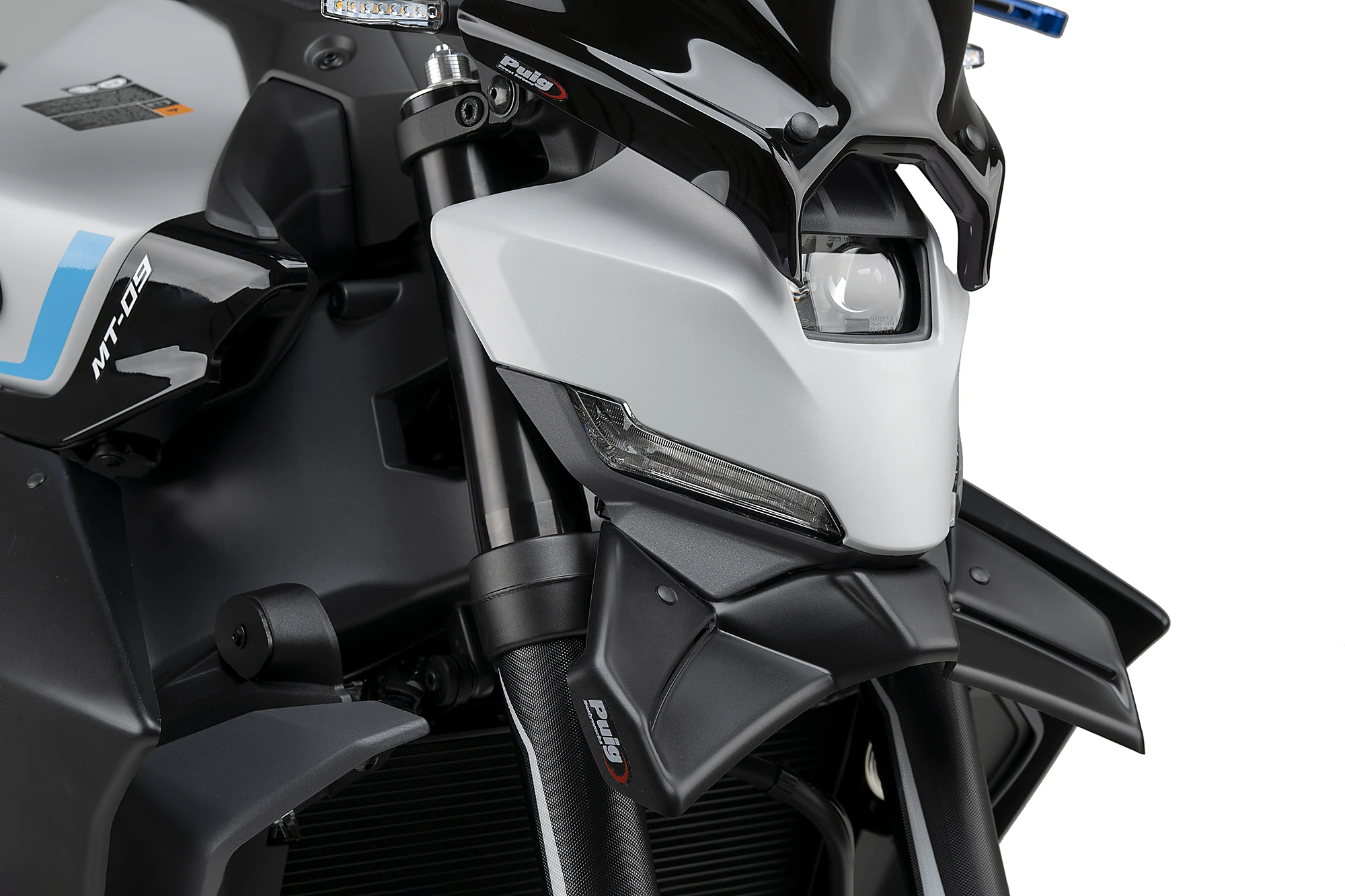 Der Naked-Frontspoiler für die neue Yamaha MT-09 wurde entworfen, um die aggressive Front der Maschine zu betonen und sich perfekt in das markante und kantige Originaldesign einzufügen. In Kombination mit dem neuen Scheinwerfer der MT-09 ergibt sich eine schärfere, aerodynamischere und sportlichere Optik, die den Wettbewerbscharakter der Maschine unterstreicht.