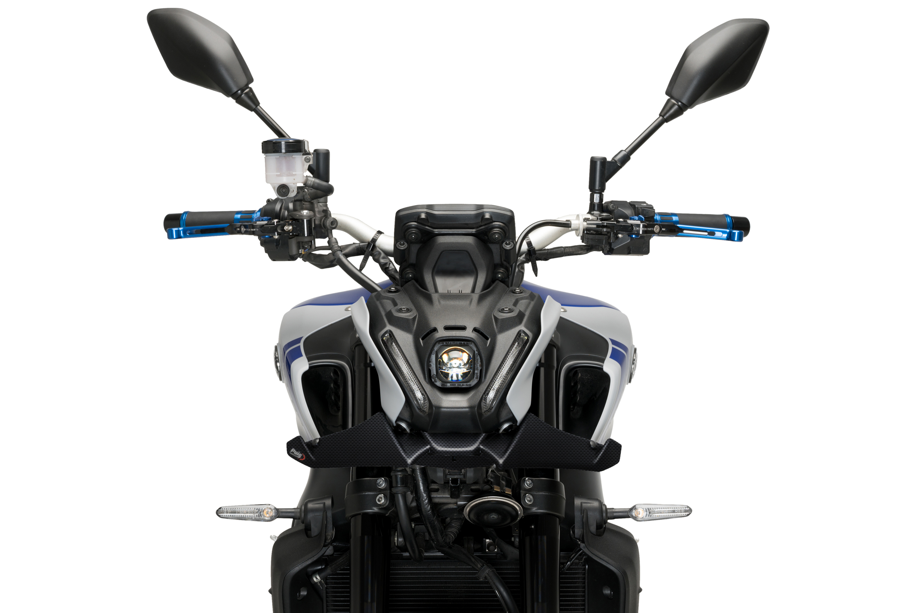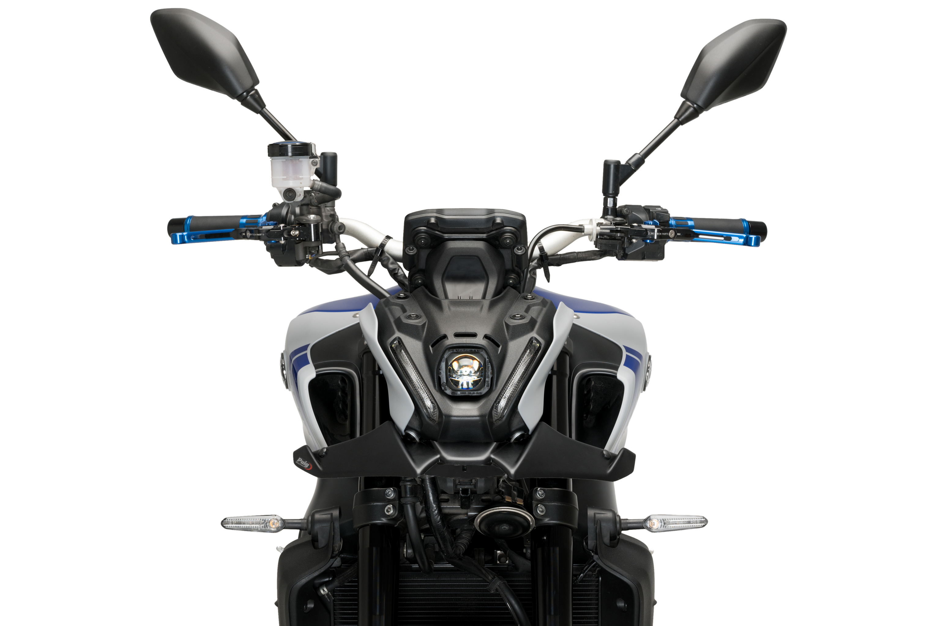 Der Frontspoiler, der dank der Erfahrung von Puig im Spitzensport entwickelt wurde, verleiht der Front der MT-09 mehr Volumen und eine ausgewogenere Ästhetik und verbessert gleichzeitig das dynamische Verhalten.