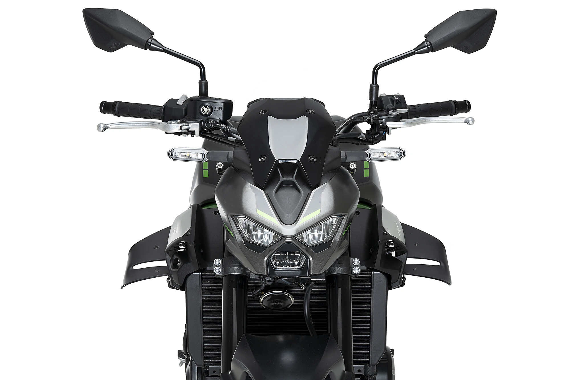 Dank dieser Konfiguration wird eine aerodynamische Last von bis zu 4,4 kg auf die Vorderachse erzeugt – das führt zu einem Anti-Wheelie-Effekt, mehr Stabilität bei hohen Geschwindigkeiten (Anti-Shimmie), besserem Bremsverhalten und stabilerem Handling bei Richtungswechseln.