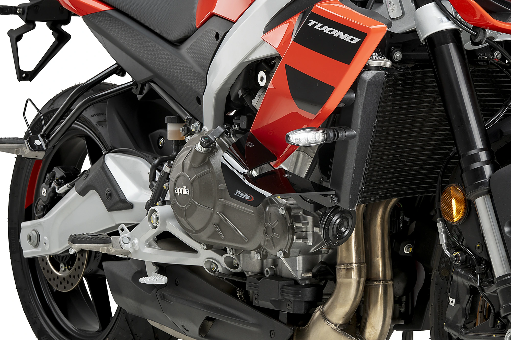 Desplazar la barra roja hacia la izquierda/derecha para ver la moto con o sin nuestro producto montado.