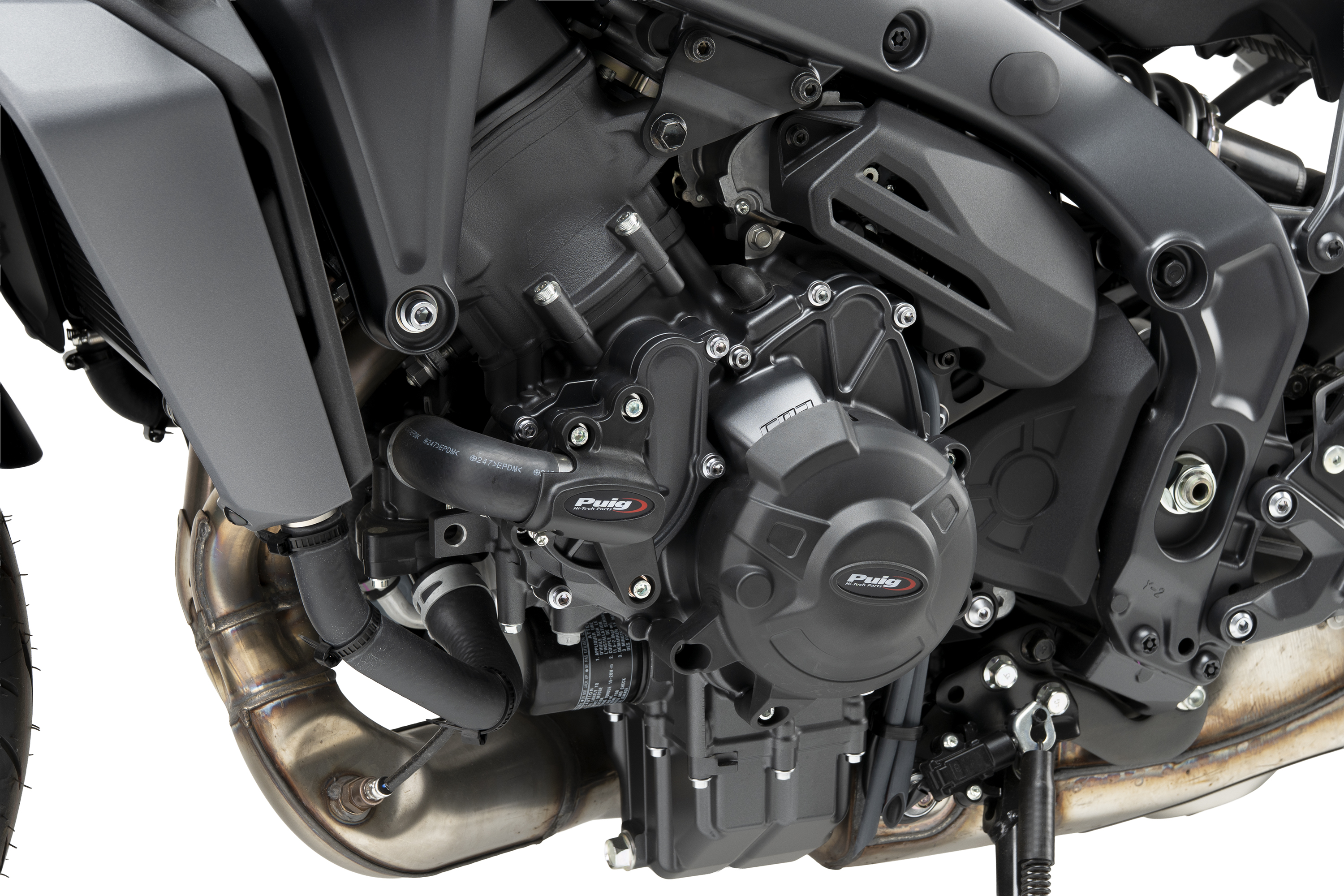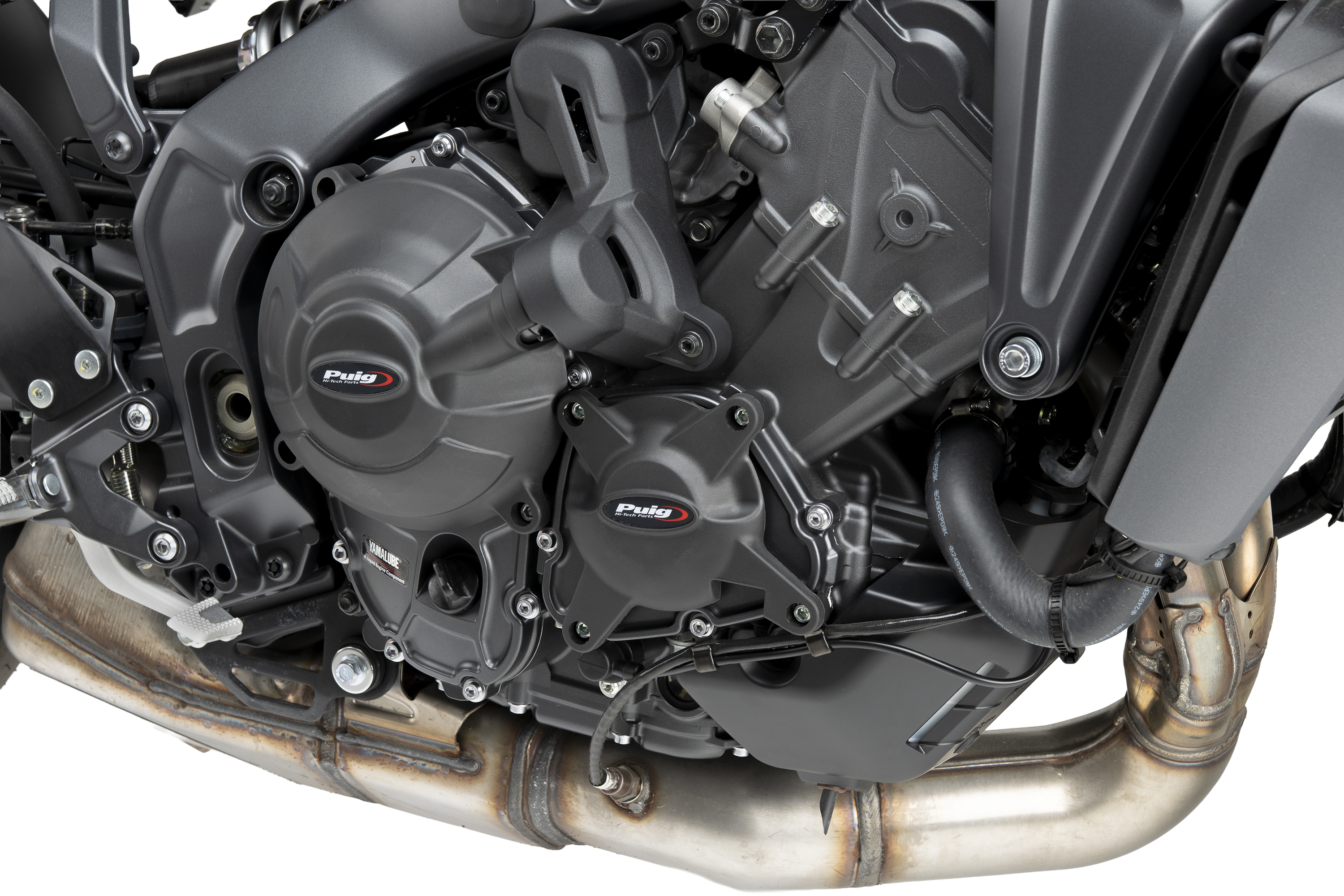Um die Ästhetik des Motorrads zu erhalten, ist die Schutzabdeckung in matt gehalten und wird am Motorrad befestigt, indem sie auf es das Motorgehäuse schrauben.