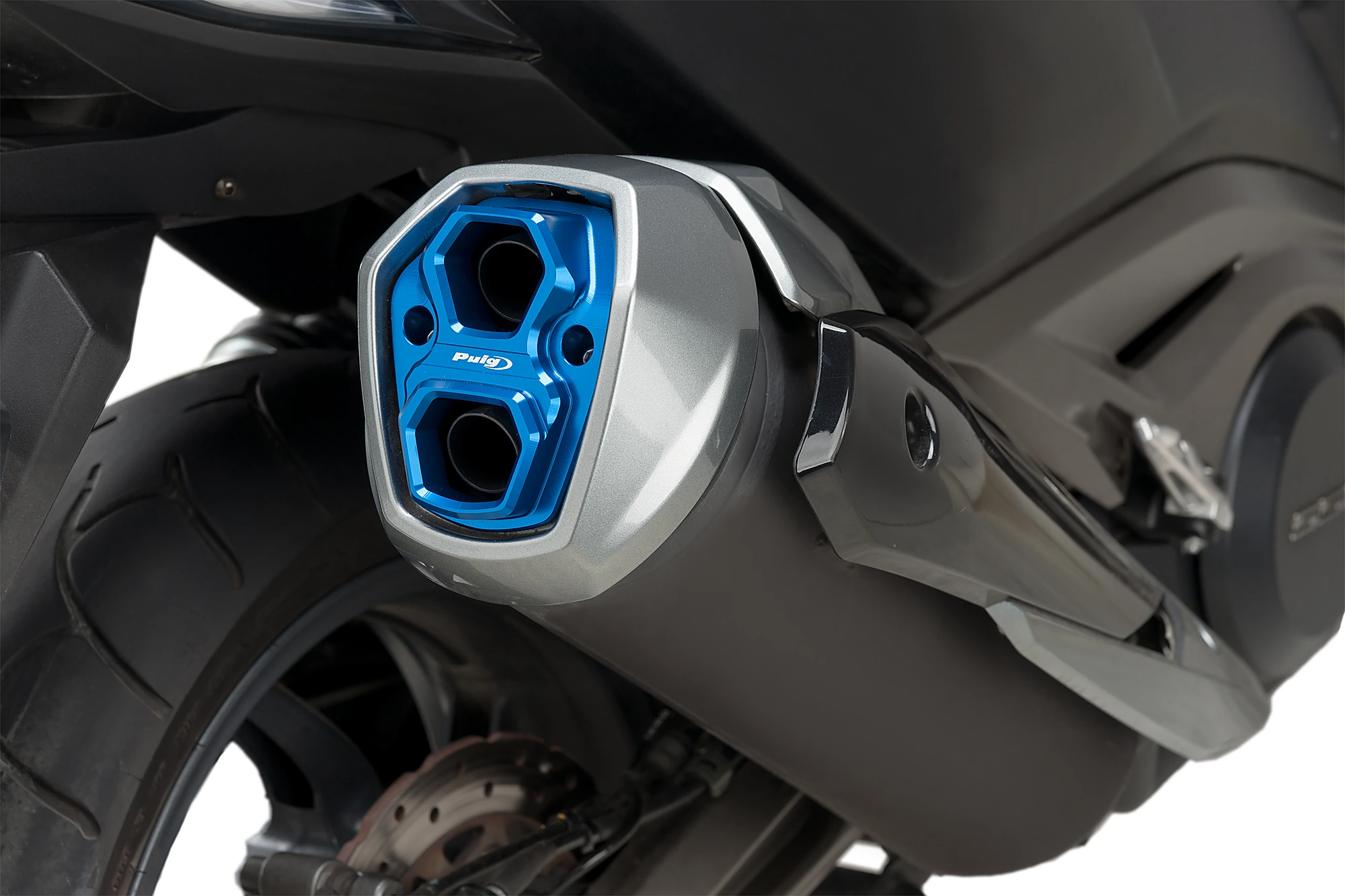Der Endring für das Yamaha-Auspuffrohr T-MAX 530 (2012 bis 2016, T-MAX DX / SX (2017) und Kymco AK550) ist Teil des Puig Katalogs für Kundenwunschanpassungen (Hi-Tech Artikel). Die Endringe sind aus Billet-Aluminium. Sie sind hochwertig eloxiert und zeichnen sich durch ihr attraktives minimalistisches Design in Blau, Schwarz, Gold oder Rot aus. Sie können selber zwischen einen diskreten und eleganten Design oder einer auffälligen Farbe für Ihr Motorrad wählen.
