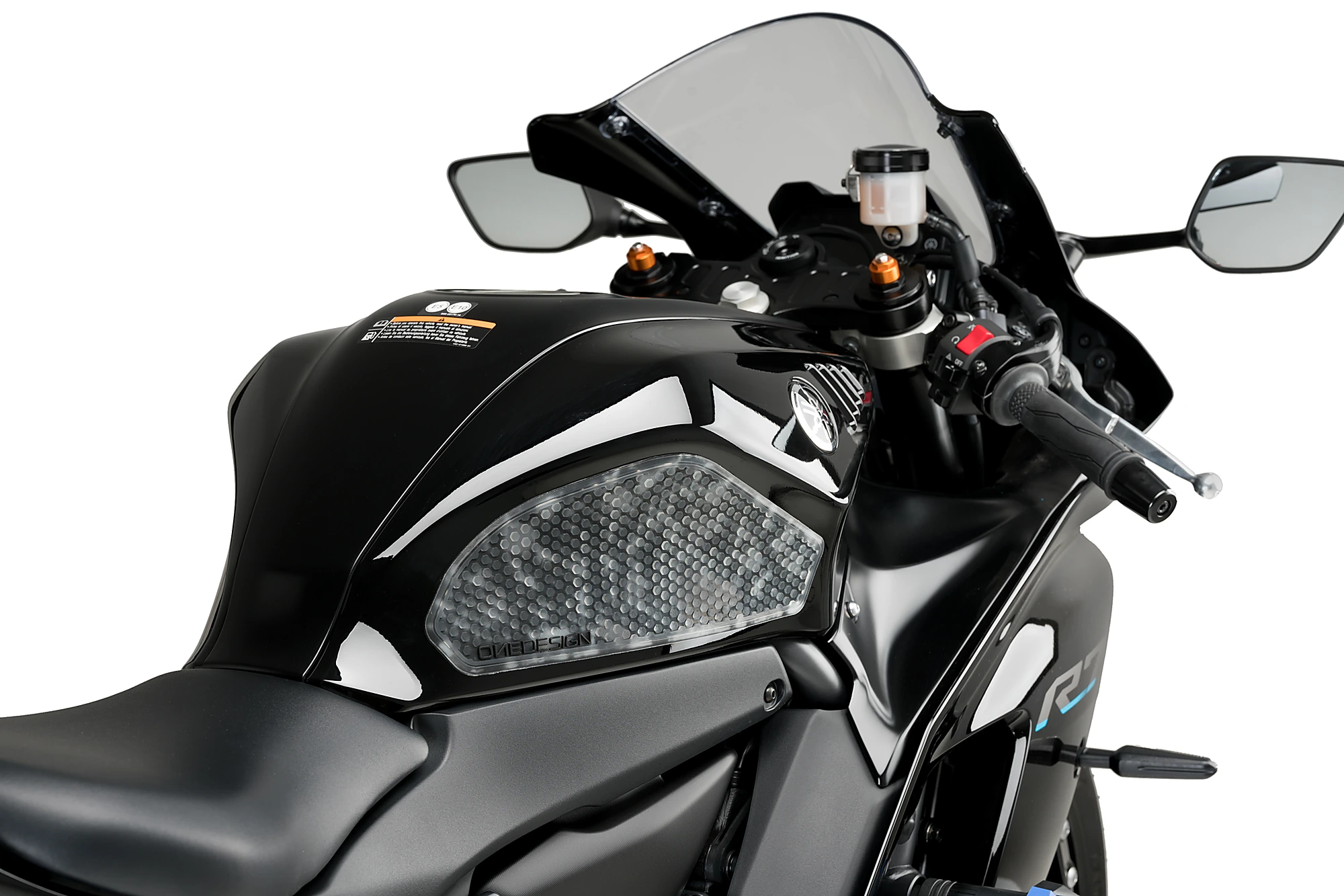Um das Aussehen des Motorrads zu erhalten, können die Tankprotektoren in Schwarz gekauft werden, und es gibt verschiedene Größen, die für ein bestimmtes Motorradmodell geeignet sind.