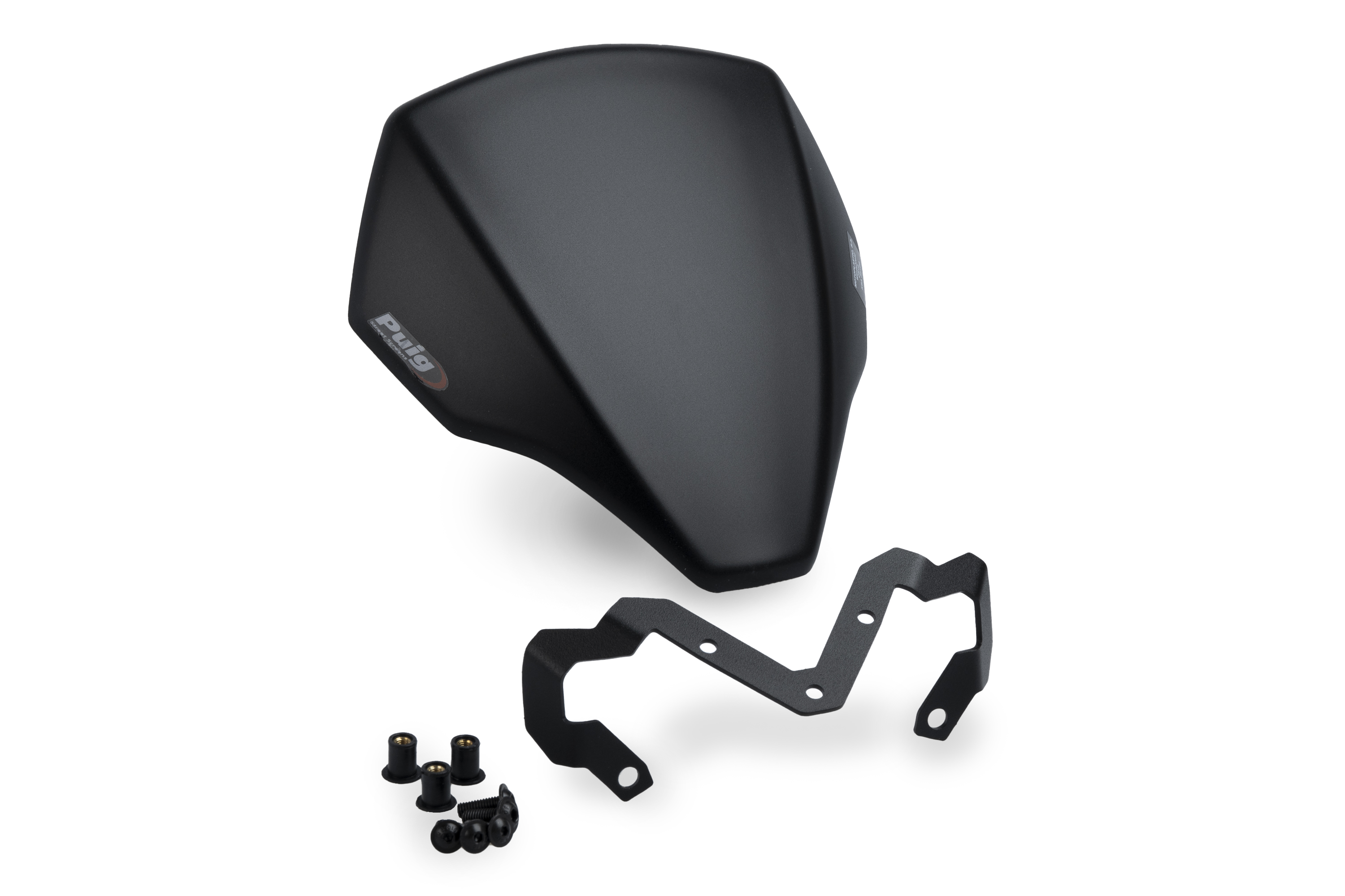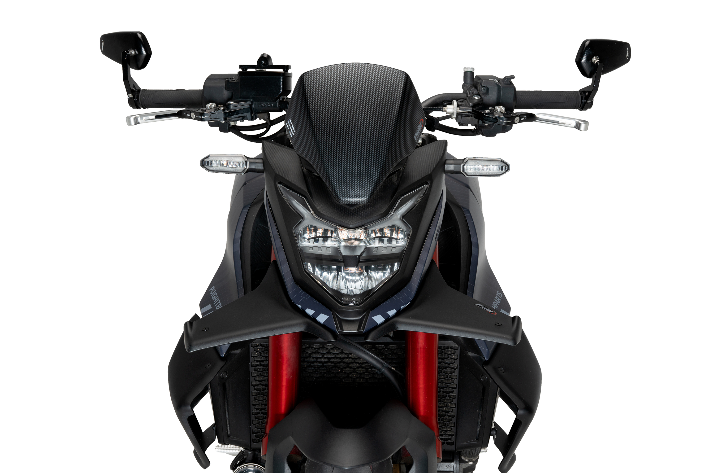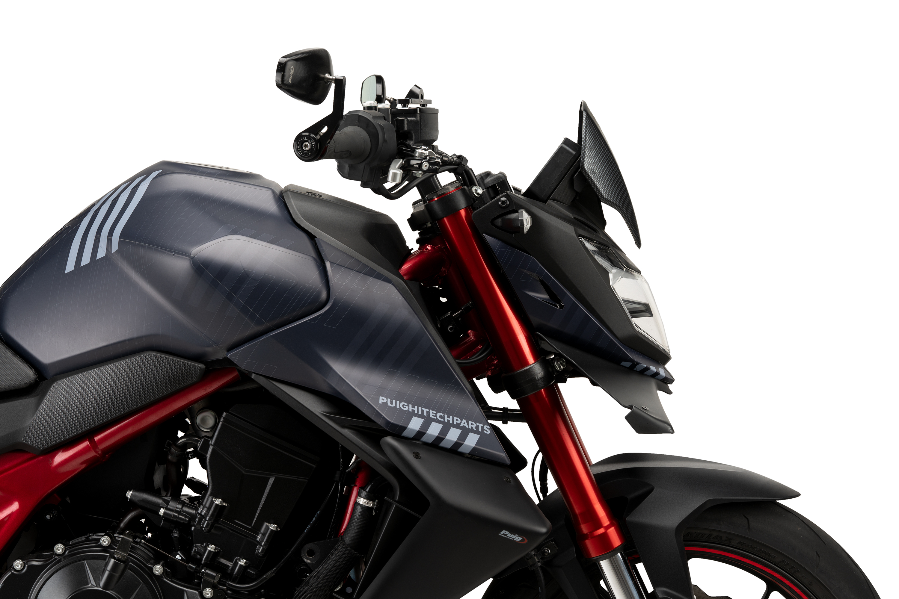 Durch den Einbau wird der vordere Teil der Instrumentierung abgedeckt, was zu einem saubereren und sportlicheren Erscheinungsbild führt. Darüber hinaus wird der aerodynamische Koeffizient des Motorrads verbessert, indem die Luft, die auf die Vorderseite des Motorrads treffen würde, sanft und schrittweise umgeleitet wird, wodurch störende Turbulenzen vermieden werden und Verbesserung des Fahrkomforts.