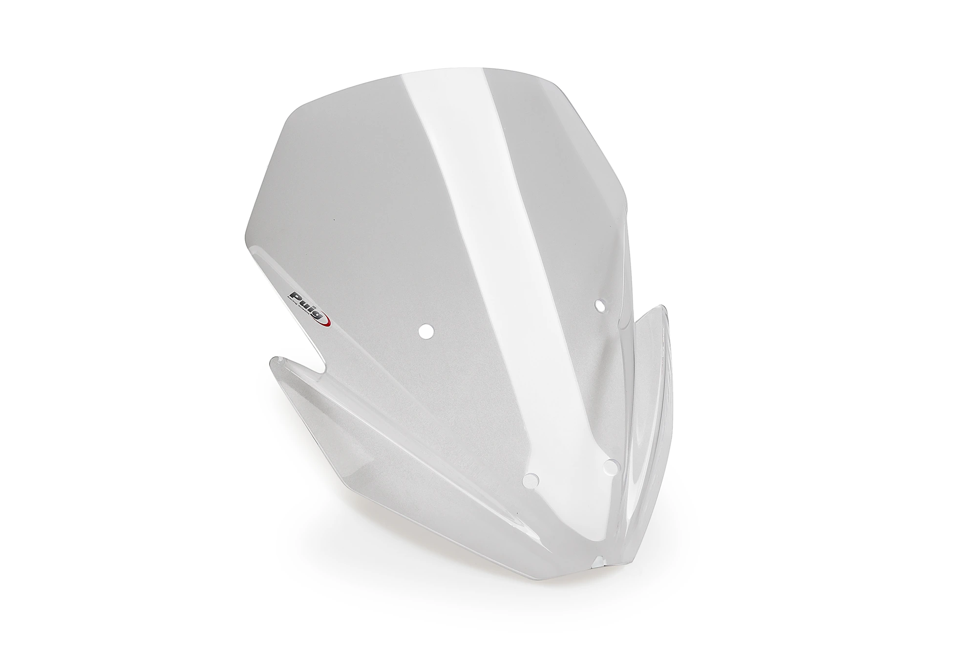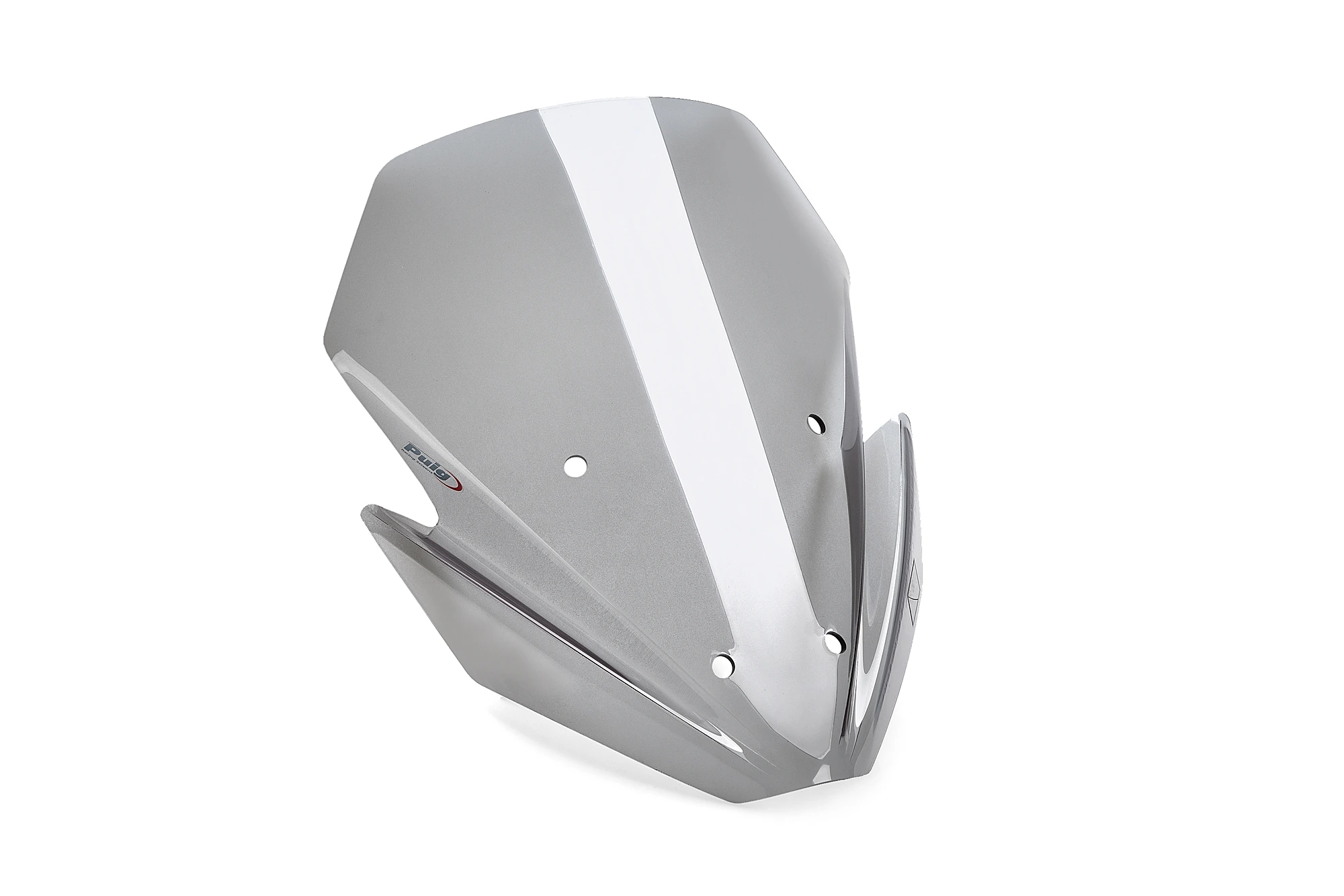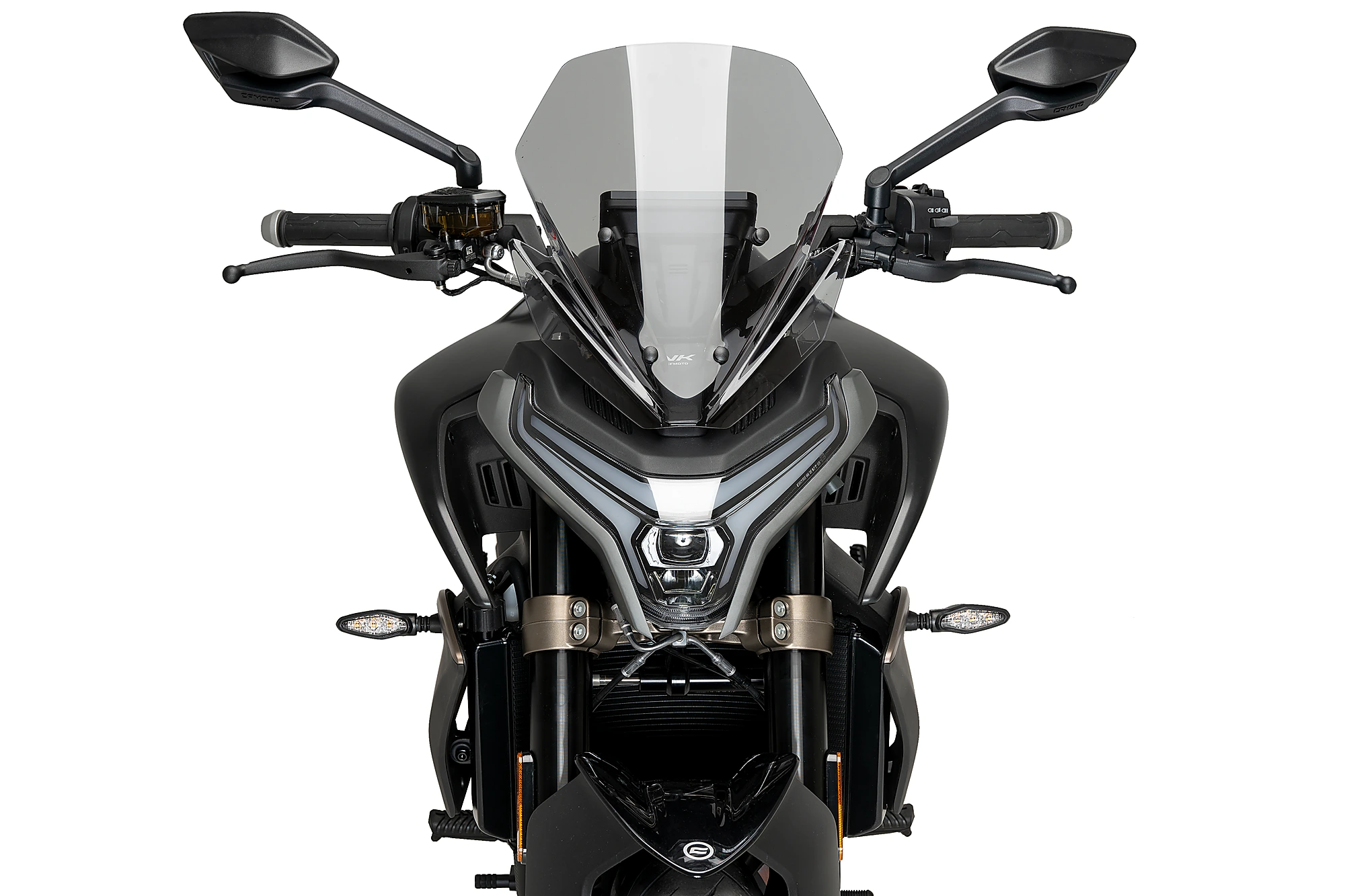 Für einen aggressiveren Look hat Puig die New Generation Sport-Windschutzscheibe für die CF Moto 800NK entworfen: gekennzeichnet durch zwei sehr ausgeprägte Rippen, die sich von der Vorderseite des Motorrads zu den Seiten erstrecken. Das Design dieser Windschutzscheibe deckt vollständig den Bereich des Tachometers ab und passt sich perfekt der Form der Vorderseite an. Die seitlichen Formen sind so konzipiert, dass sie die Luft besser verteilen, die direkt auf die Hände treffen würde, was einen höheren Fahrkomfort und eine spürbare aerodynamische Verbesserung bietet.