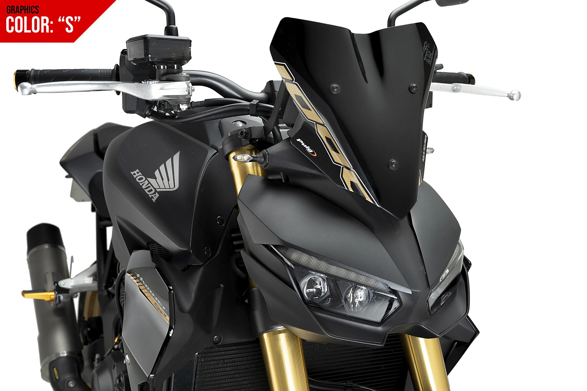 Die NG Sport-Scheibe von Puig für die neue Honda CB1000 Hornet wurde entworfen, um sich harmonisch in den aggressiven und sportlichen Charakter dieses modernen Naked Bikes einzufügen.